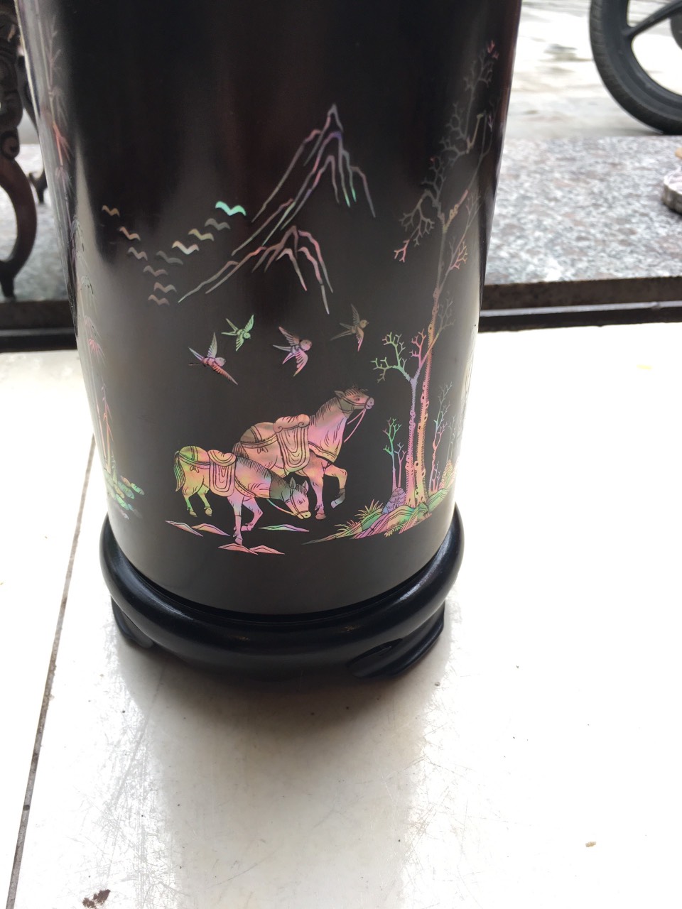 _ Hộ đựng trà được tiên khắc kết hợp với khảm ốc đỏ ,rất tỉ mỉ tinh sảo kỳ công ,Ốc đỏ là một loại ốc quý hiếm ,thường xuyên sinh sống ở những nước xa sôi như singgapo và nhật bản ,như ở việt nam biển rất nhiều lên không có ốc ,nếu có thì có rất ít lại không mầu ,Chính vì thế ốc thường được nhập khẩu từ singgapore về rất đắt đỏ ,những bù lại mầu sắc rất đỏ và đẹp ,và được rất nhiều người ưa chuộng cũng như muốn sử hữu 1 sẩn phẩm khảm ốc đỏ như khảm sập gụ tủ chè tranh ảnh ,đặt biệt khảm vào hộp đựng trà ,kết hợp với chất liệu thân gỗ trắc đỏ đen . Đã nâng tầm hộp trà chè với sự sang trọng được đánh giá cao .Hộp đựng trà chè được làm và hoàn thiện do bàn tay khối óc tài hoa từ những người thợ dầy rặn kinh nghiệm ,Cũng như tay nghề cao trong làng nghề truyền thống .Chính vì thế hộp đựng trà đã đáp ứng đầy đủ những tiêu trí ( Đẹp bền rẻ ) Thẩm mỹ nghệ thuật với chất lượng tuyệt vời
