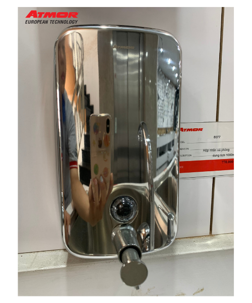 - Hộp nhấn xà phòng inox ATMOR 8077 là sản phẩm nằm trong nhóm phụ kiện phòng tắm luôn được tin dùng bởi các dự án công trình công cộng.