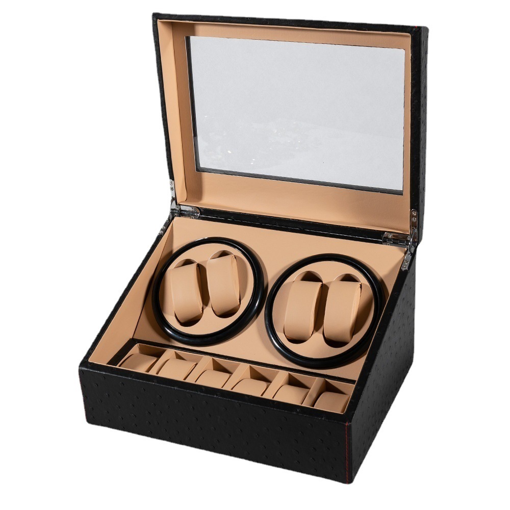 Thông tin sản phẩm: Hộp Lắc Đồng Hồ Cơ SAIKE S4603 Mẫu 4 Xoay 6 Tĩnh Vỏ Da Đà Điểu Cao Cấp - Thương hiệu: SAIKE - Hộp thiết kế đựng 4 chiếc đồng hồ