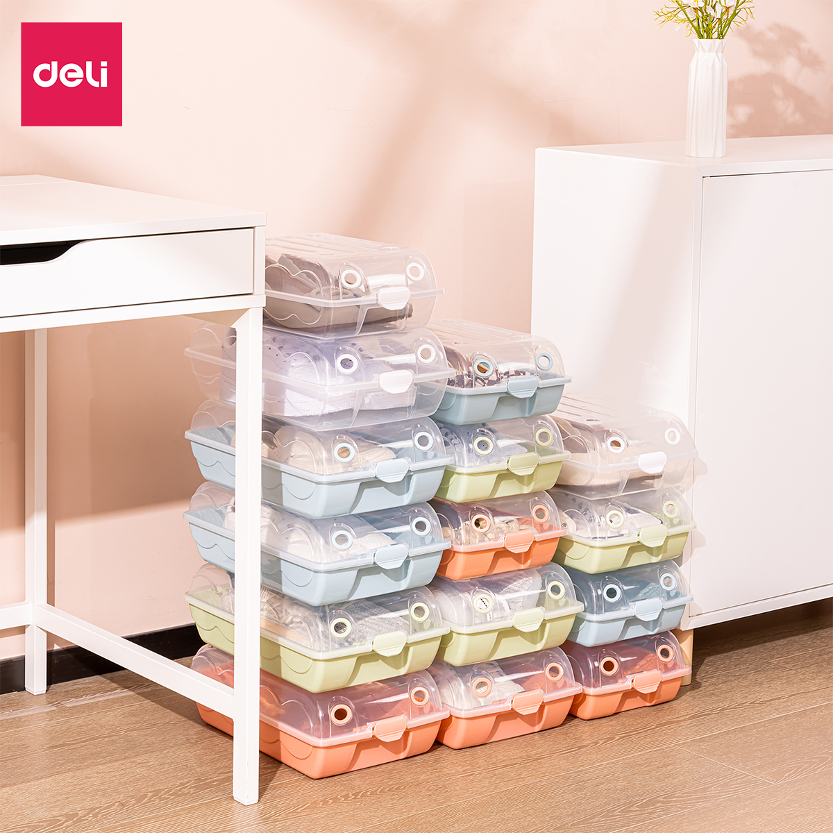 ✨Hộp Nhựa Đựng Giày Trong Suốt Có Nắp Đậy Nhiều Màu Thông Minh Tiện Lợi Deli - Hộp Đựng Giày Nhựa PP Dẻo Chịu Lực Nhiều Size Có Thể Xếp Chồng