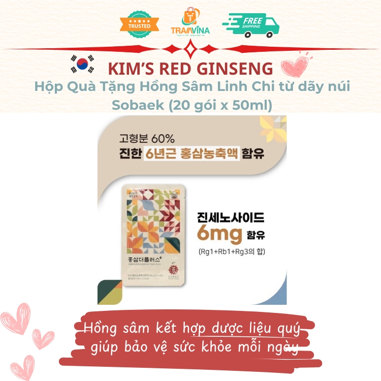 ✨Hộp Quà Tặng Hồng Sâm Linh Chi Kim's Red Ginseng từ dãy núi Sobaek - Tonic Plus (20 gói x 50ml)