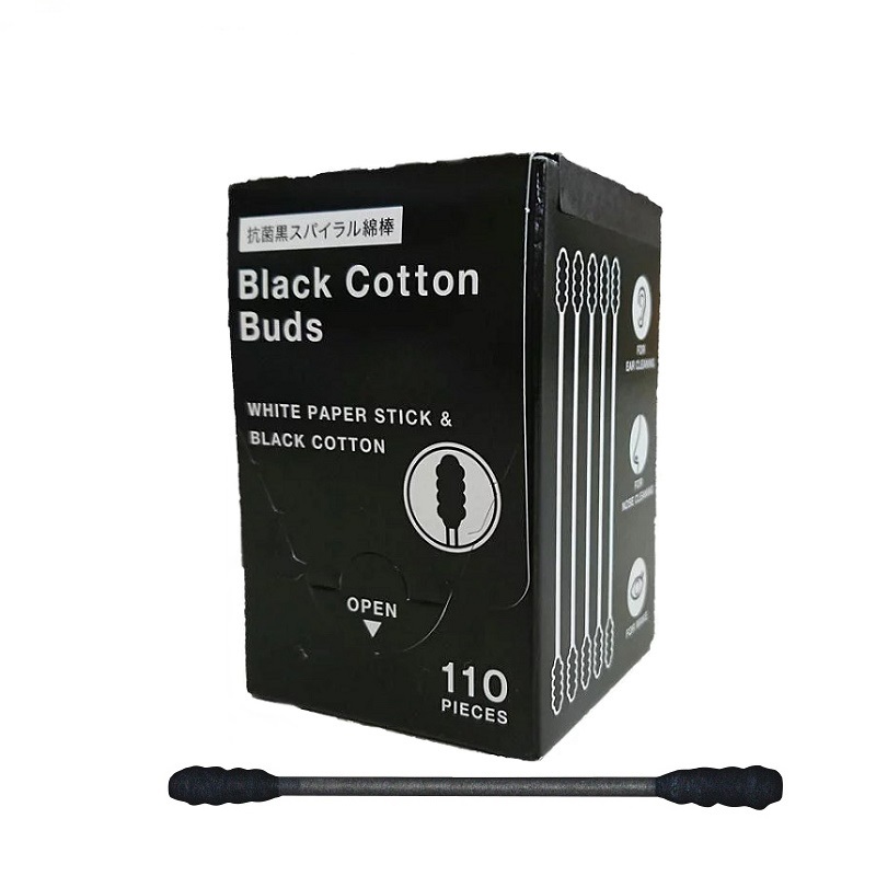 Hộp 110 tăm bông kháng khuẩn than hoạt tính Sanritsu 100% bông gòn tự nhiên mềm mại