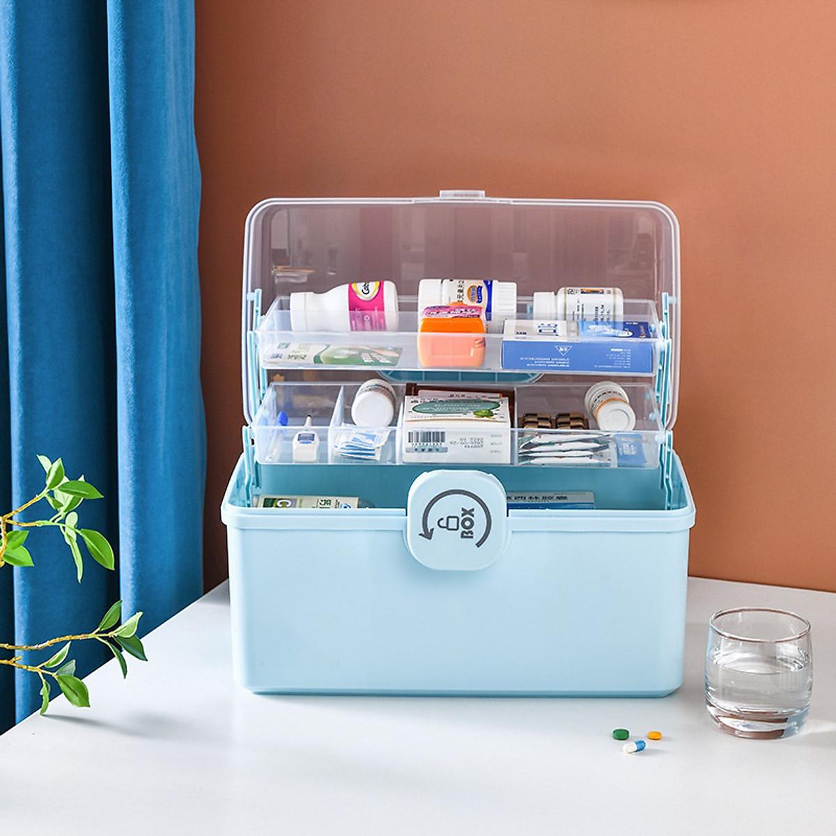 Hộp đựng thuốc gia đình 3 tầng, hộp thuốc y tế cho gia đình có tay cầm, khoá hộp gọn gàng và tiện lợi có size lớn, size vừa, và size bé.