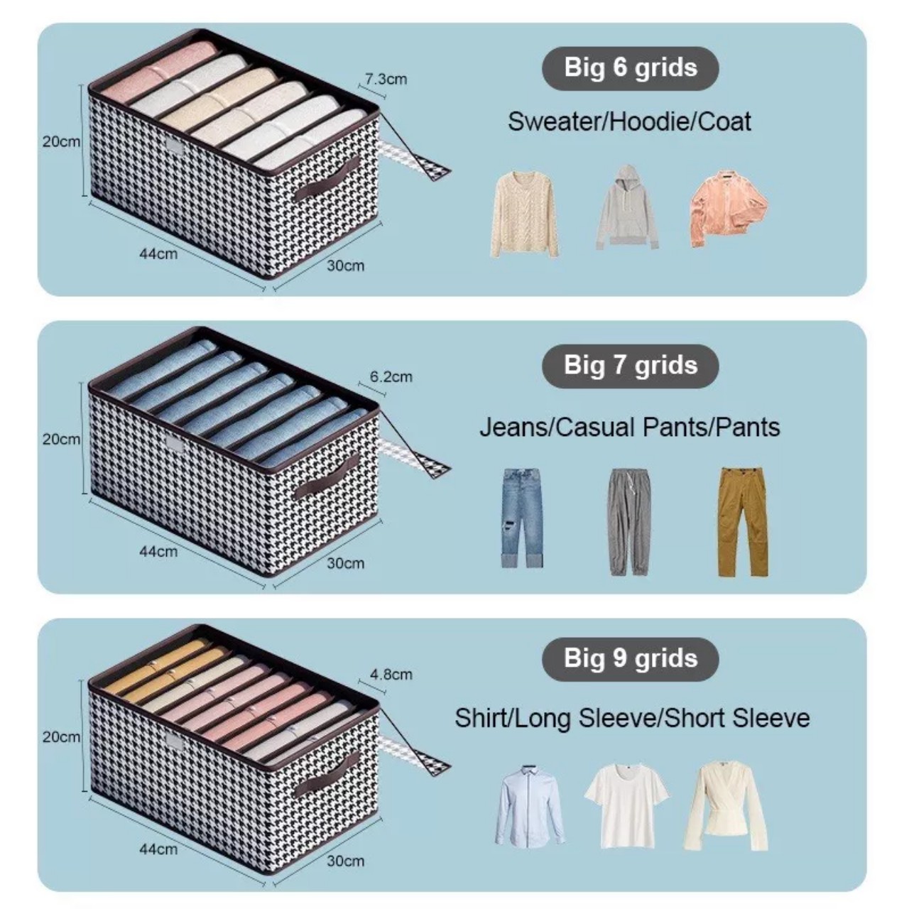 Hộp Đựng Quần Áo Chia Ngăn, Khay Đựng Đồ 9 Ngăn Có Nắp Gấp Gọn Tiện Lợi