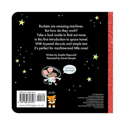 How it Works: Rocket Zoom! Zoom! Follow the speeding rocket up to the moon and back in this super simple first introduction to space travel. With layered die-cuts, fun facts and a mouse to spot