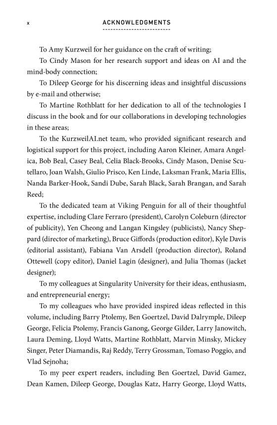 Kurzweil discusses how the brain functions, how the mind emerges from the brain, and the implications of vastly increasing the powers of our intelligence in sing the world’s problems. He thoughtfully examines emotional and moral intelligence and the origins of consciousness and envisions the radical possibilities of our merging with the intelligent technology we are creating.