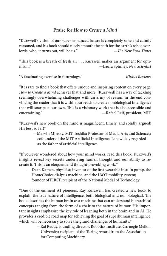 Certain to be one of the most widely discussed and debated science books of the year, How to Create a Mind is sure to take its place alongside Kurzweil’s previous classics which include Fantastic Voyage: Live Long Enough to Live Forever and The Age of Spiritual Machines.