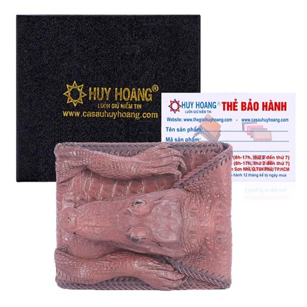 Ví/Bóp nam Huy Hoàng da bò vân cá sấu màu nâu đỏ 2148