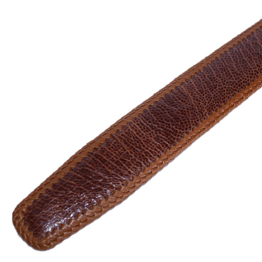 ✨HP4465 - Dây nịt nam da đà điểu Huy Hoàng đan viền 3,5P đầu kim màu vàng bò