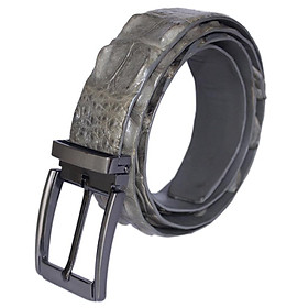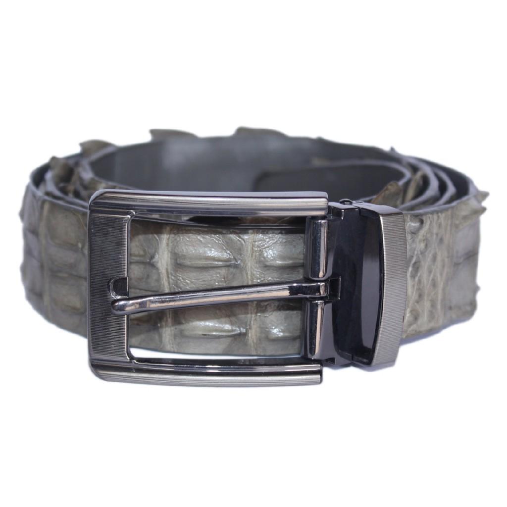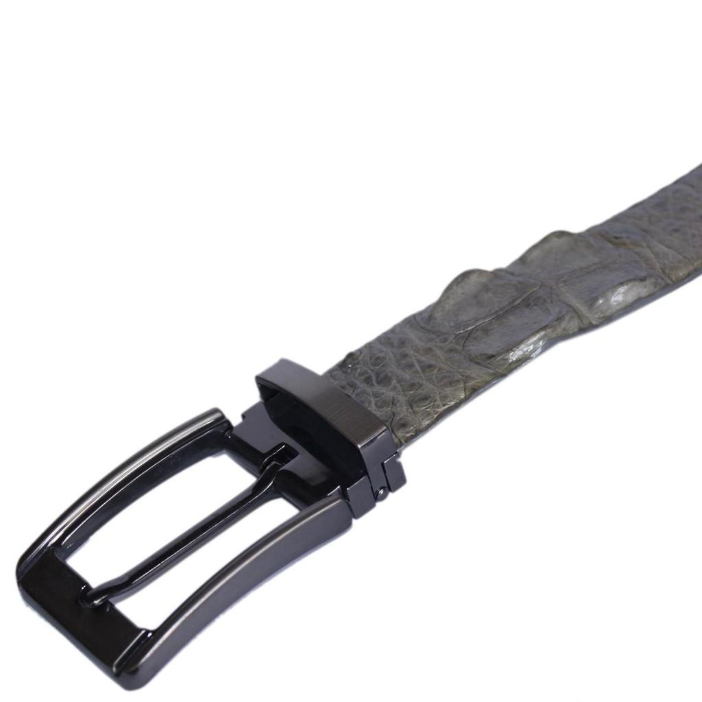 ✨HP4809 - Dây nịt nam Huy Hoàng da cá sấu nguyên con 3,5P đầu kim màu xám