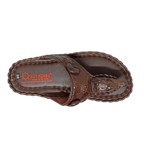 Dép nam Huy hoàng da bò quai ngang màu nâu 7137