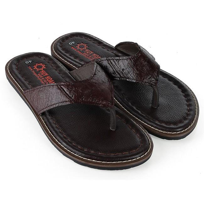 ✨HP7413-14-15-16 - Dép nam da đà điểu Huy Hoàng da hột màu đen, nâu đất, vàng bò, nâu đỏ