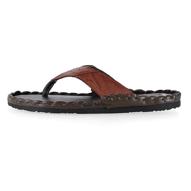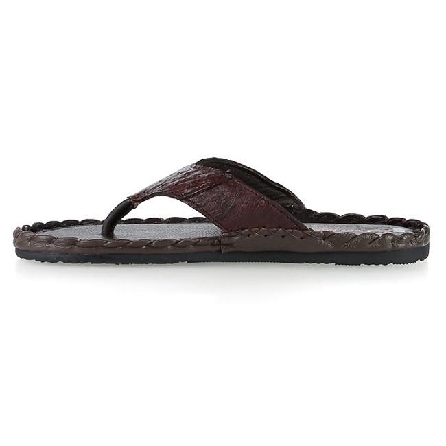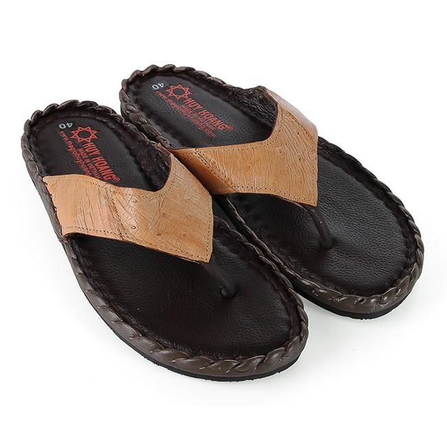 ✨HP7417-18-19-20 - Dép nam da đà điểu Huy Hoàng da hột đan màu đen, nâu đất, vàng bò, nâu đất