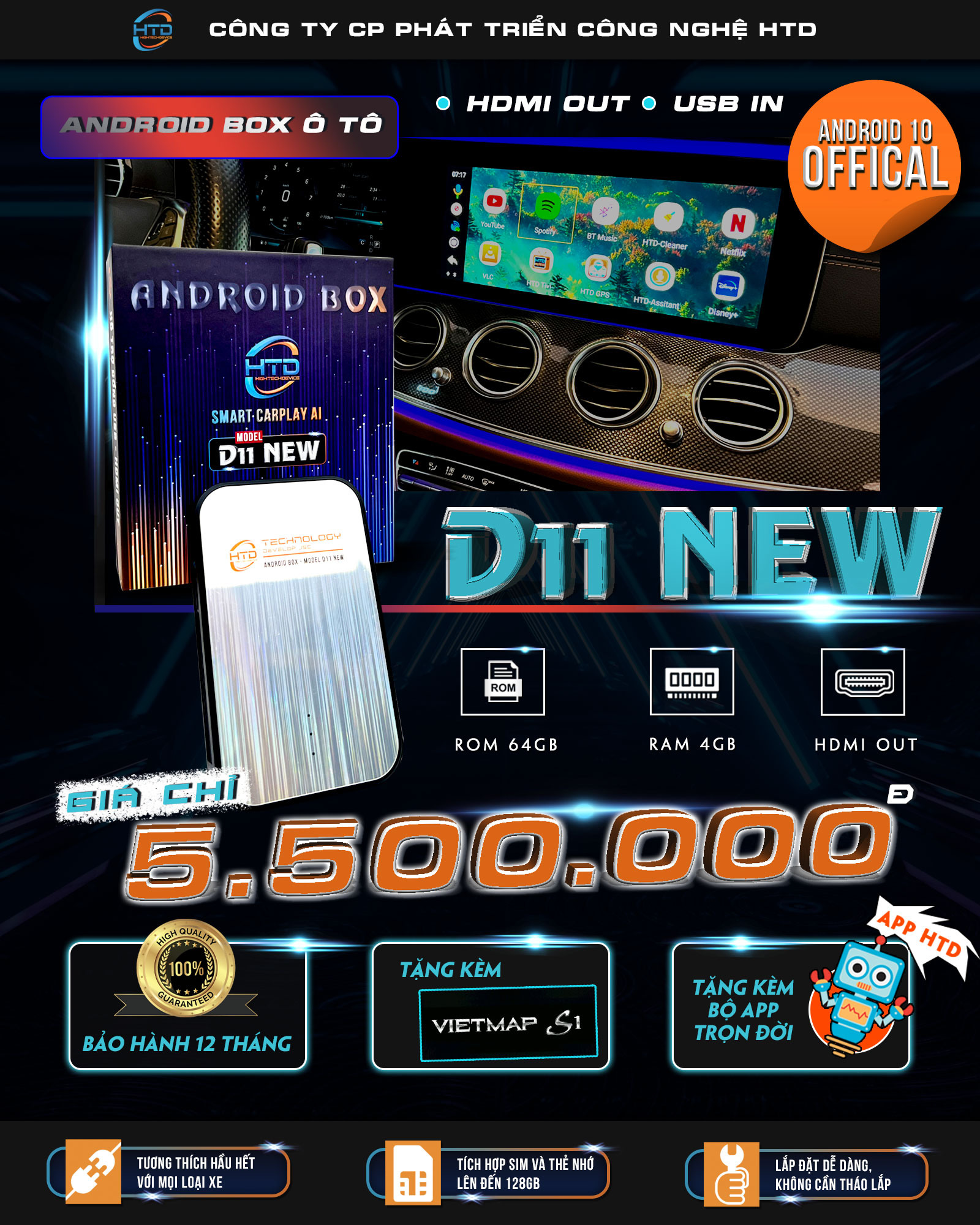 Siêu phẩm HTD Smart Carplay Android AI Ô Tô D11 New chính hãng của Công ty Cổ phần - Phát triển - Công nghệ HTD.