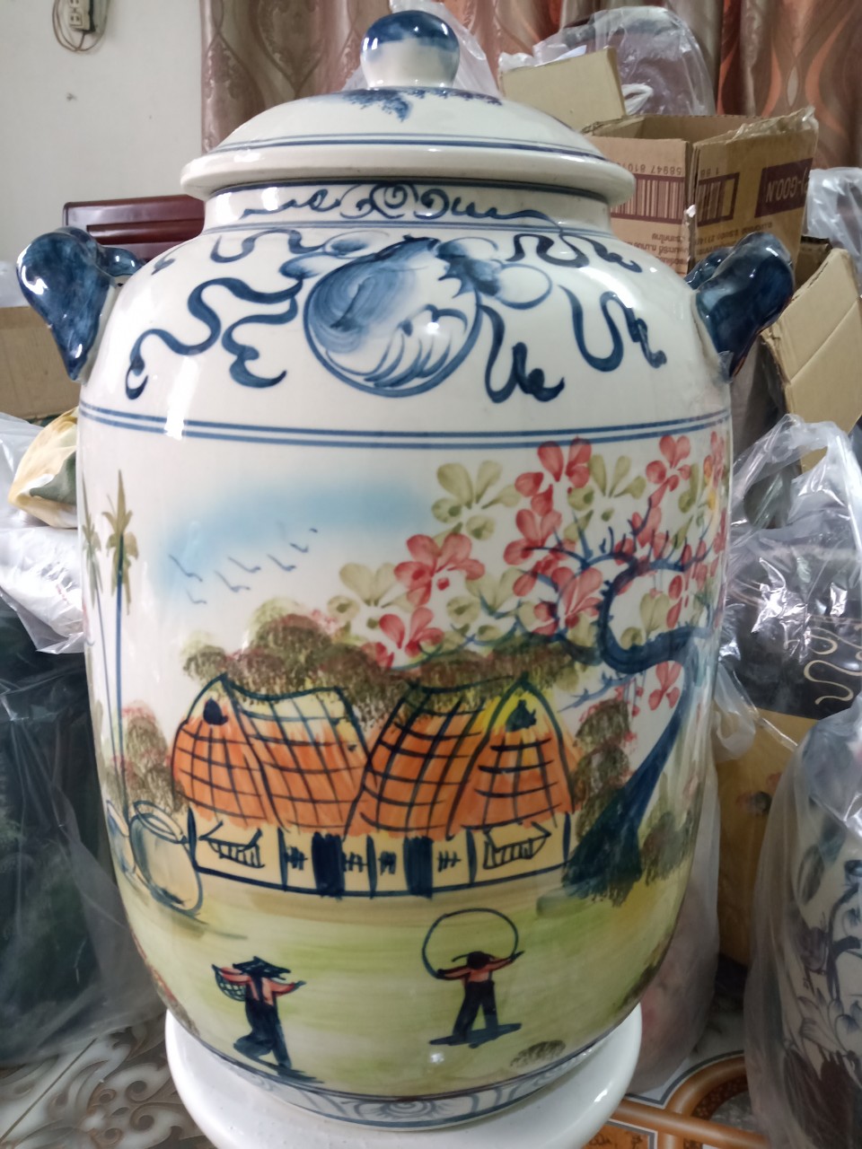 Hũ đựng rượu gạo vẽ phong cảnh Bát Tràng loại 20L (hoa văn ngẫu nhiên)Hũ đựng rượu gạo vẽ phong cảnh Bát Tràng loại 20L (hoa văn ngẫu nhiên)