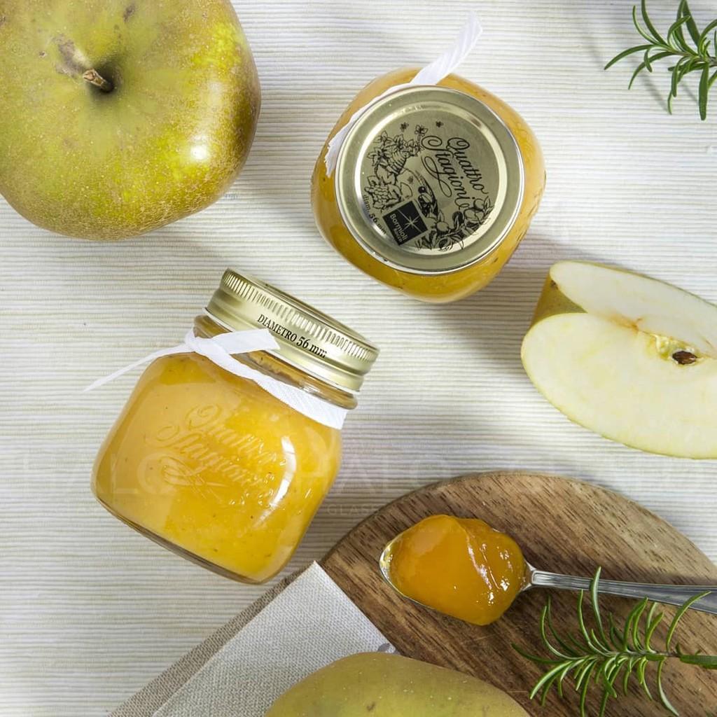 Nắp đậy màu vàng đồng nổi bật có in logo thiết kế dạng xoay giúp đậy kín và cách ly thực phẩm khỏi bụi bẩn. Phần thân hũ cách điệu với logo Quattro Stagioni in nổi vừa đẹp mắt vừa có công dụng chống trơn trượt và làm nổi bật sự tinh tế của chất liệu thủy tinh.