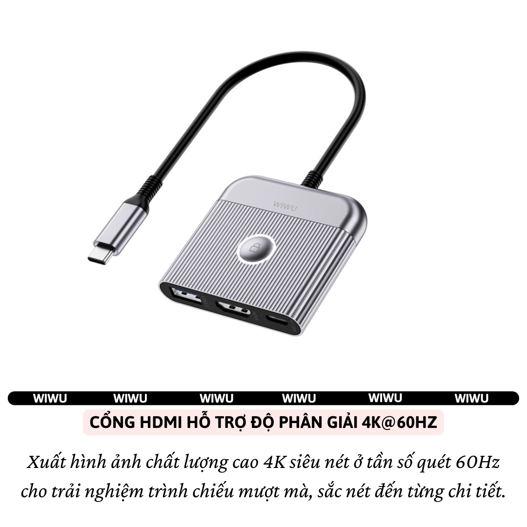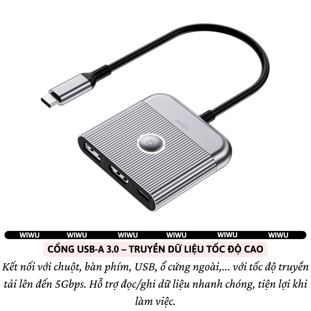 Mua tại Tiktok️ BỘ CHUYỂN ĐỔI ĐA NĂNG WIWU TRAVEL 3 IN 1 DOCKING STATION – GIẢI PHÁP KẾT NỐI CHUYÊN NGHIỆP CHO DÂN VĂN PHÒNG & NGƯỜI HAY DI CHUYỂN Bạn đang tìm một bộ hub nhỏ gọn, bền bỉ, đa năng để vừa sạc vừa xuất màn hình và truyền dữ liệu nhanh chóng? WiWU Travel 3 in 1 Docking Station chính là giải pháp gọn – gắn – gánh tất cả! TÍNH NĂNG NỔI BẬT: Cổng USB-C PD 100W – Sạc siêu nhanh, tiết kiệm thời gian