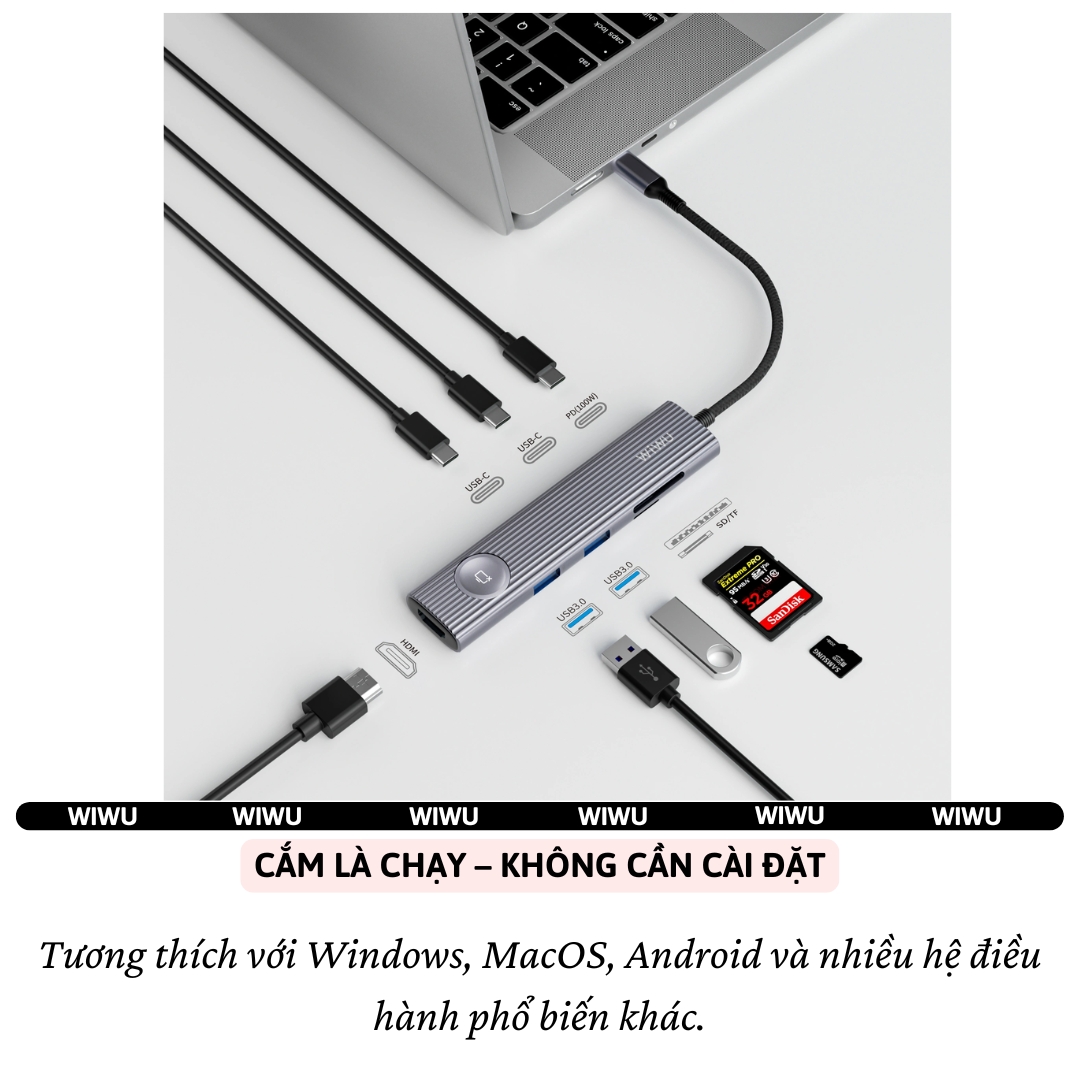 Mua tại TiktokHUB MỞ RỘNG WIWU TRAVEL 8 IN 1 DOCKING STATION – GIẢI PHÁP KẾT NỐI TỐI ƯU CHO DÂN CÔNG NGHỆ KẾT NỐI MỌI THIẾT BỊ – GỌN NHẸ CHO MỌI HÀNH TRÌNH Bạn đang sử dụng Macbook, laptop mỏng nhẹ hay tablet nhưng bị hạn chế cổng kết nối? WiWU Travel Docking Station sẽ là trợ thủ đắc lực – giúp bạn mở rộng tới 8 cổng trong 1 thiết bị nhỏ gọn, phục vụ từ làm việc văn phòng, họp trực tuyến cho đến chỉnh sửa ảnh, video chuyên nghiệp. TÍNH NĂNG NỔI BẬT: 8 cổng kết nối tiện lợi trong 1 thiết bị: