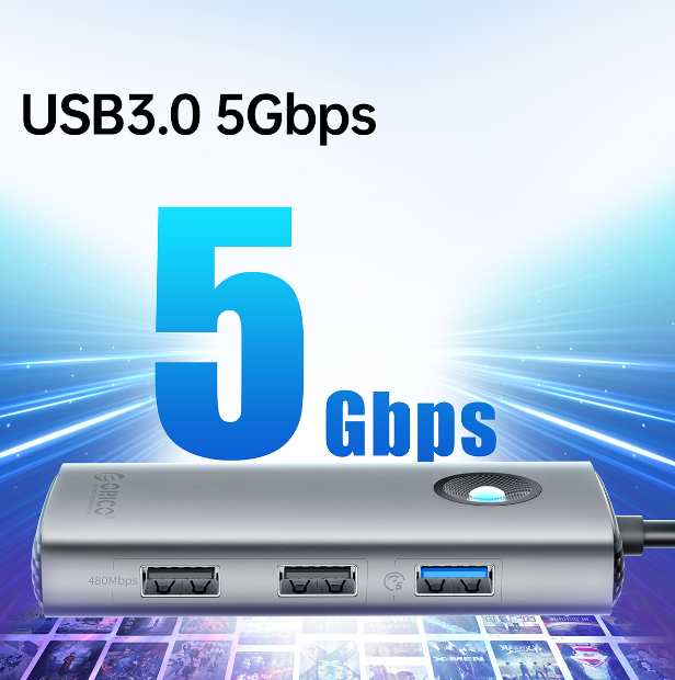 Hub đa năng 5 in 1 cổng Type-C ORICO PW11-5P-GY - Đầu vào (input): Type-C. - Đầu ra (output): 1 cổng USB 3.0 (5Gbps), 2 cổng USB 2.0 (480Mbps), 1 cổng sạc 60W, 1 cổng