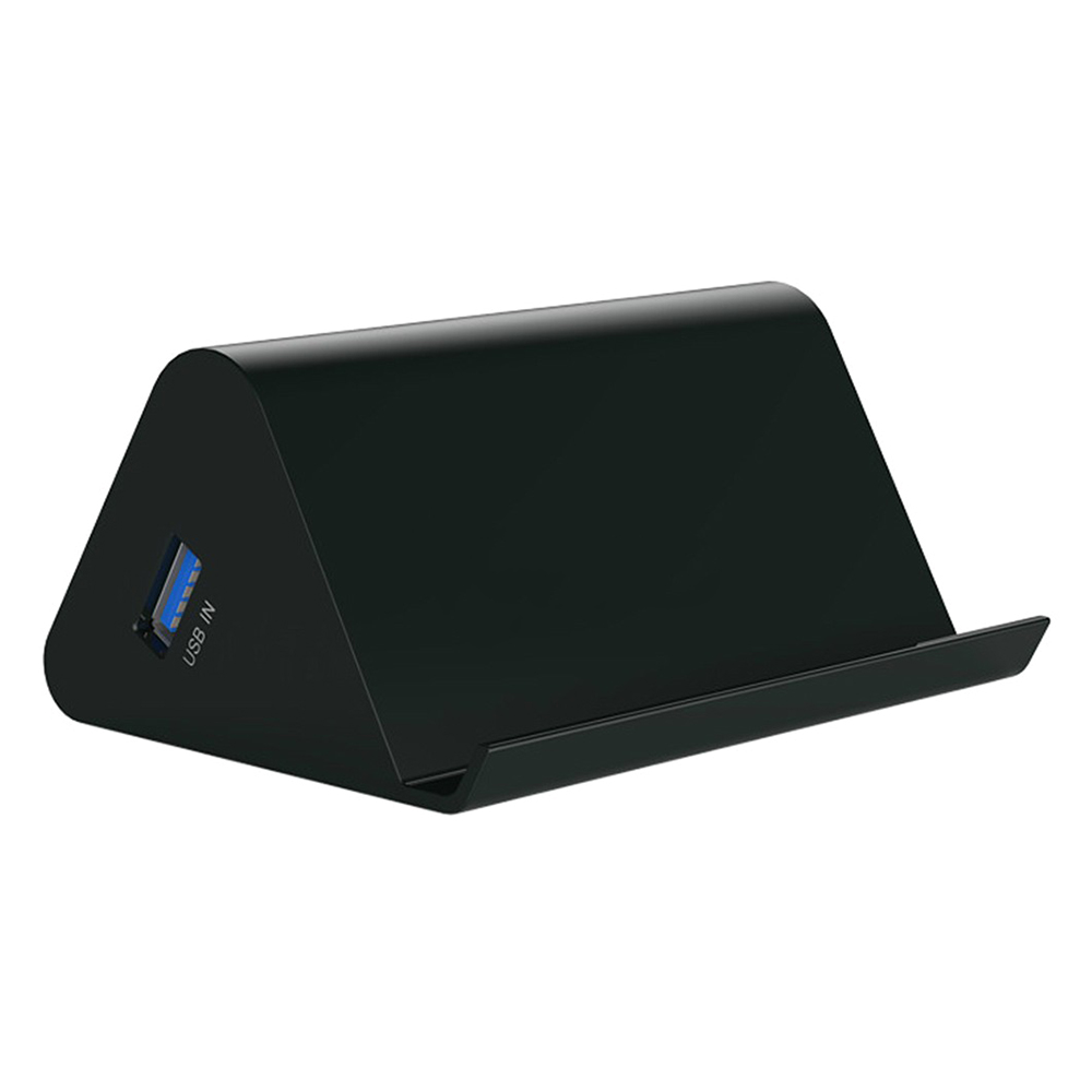 Hub USB 3.0 Orico SHC-U3 thiết kế hình dạng tam giác trụ ngang, có giá đỡ tiện lợi cho việc cất giữ điện thoại, tablet. Người dùng có thể tận dụng sản phẩm để đặt điện thoại, tablet khi xem phim, đọc báo… 4 khe cắm USB được bố trí nằm ngang, bên dưới logo thương hiệu được thiết kế nổi bật. Sản phẩm lại không tốn quá nhiều diện tích khi sử dụng, vì thế bạn có thể mang theo bên mình mọi lúc mọi nơi.