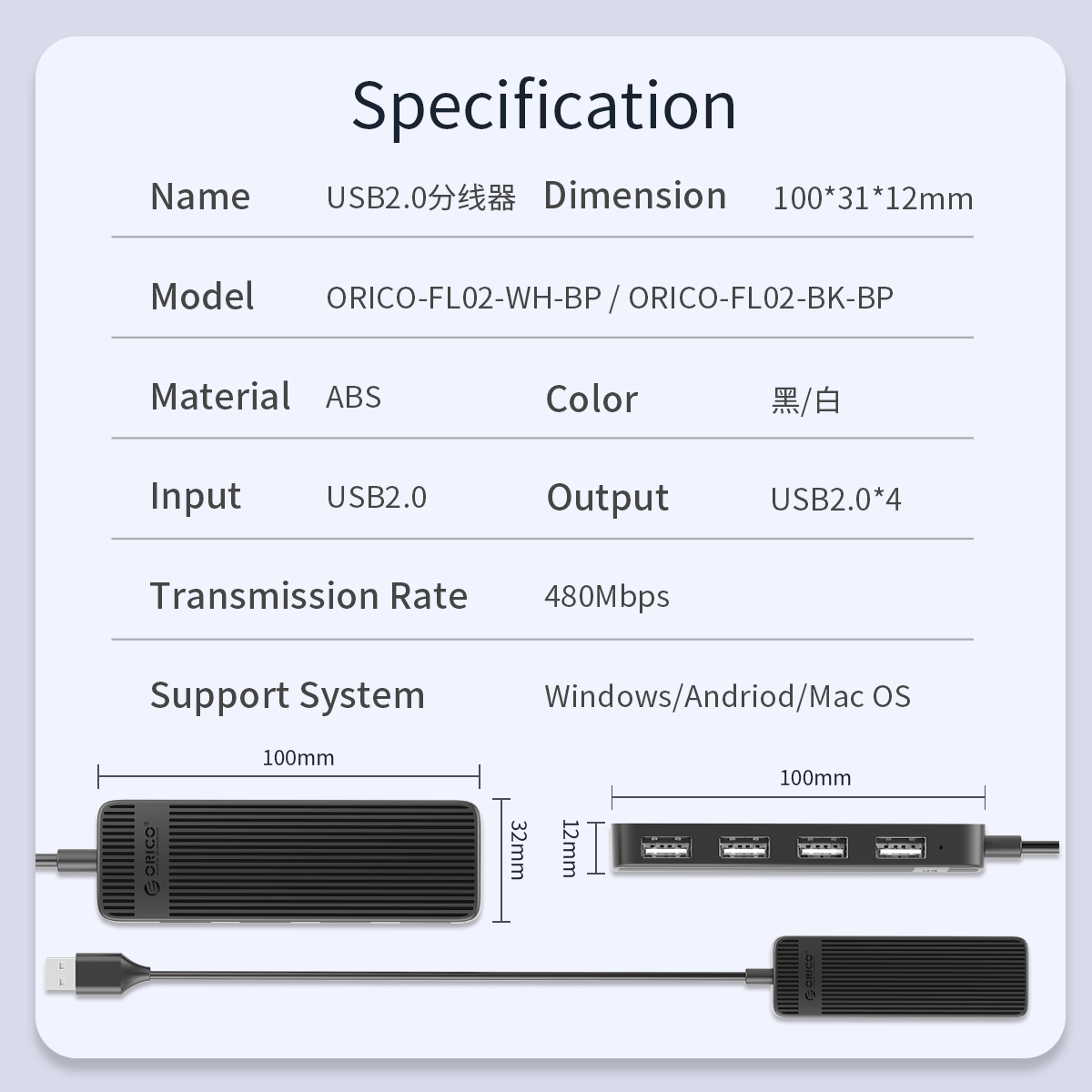 Hub USB 2.0 Orico FL01 (4 Cổng) được thiết kế với khả năng đáp ứng dòng điện cho cả 4 thiết bị cùng 1 lúc,