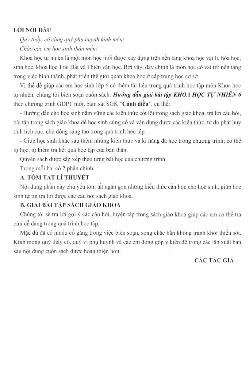 Vì thế để giúp các em học sinh lớp 6 có thêm tài liệu trong quá trình học tập môn Khoa học tự nhiên, chúng tôi biên soạn cuốn sách: Hướng dẫn giải bài tập KHOA HỌC TỰ NHIÊN 6 theo chương trình GDPT mới, cụ thể: