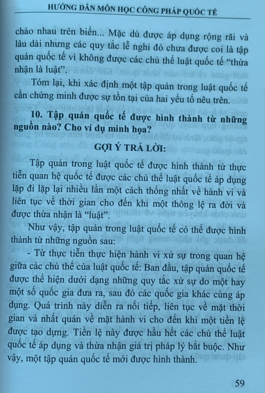 Cuốn sách được thiết kế rất sát với các vấn đề của các giáo trình công pháp quốc tế phổ biến hiện nay, qua đó sẽ giúp người học vừa tận dụng được nguồn tri thức quý báu từ các giáo trình, các bài tập giảng, vừa làm sâu sắc hơn kiến thức và những câu hỏi xoay quanh các vấn đề của các môn học."