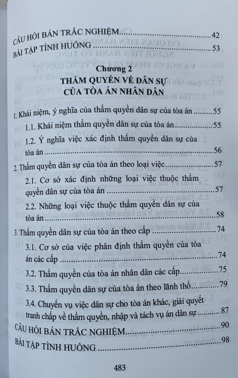 Cuốn sách được chia thành 9 chương, trong đó mỗi chương trình bày cô đọng những nội dung cơ bản về những vấn đề chung của luật tố tụng dân sự Việt Nam và thủ tục giải quyết các vụ án dân sự. Mỗi mục ngoài phần trình bày những kiến thức,lý luận cơ bản, quy định của pháp luật cơ bản, quy định của pháp luật hiện hành còn có các tình huống, ví dụ minh họa. Đặc biệt cuối mỗi chương đều có các câu hỏi lý thuyết , câu hỏi trắc nghiệm, bài tập tình huống và gợi ý giải quyết tình huống .
