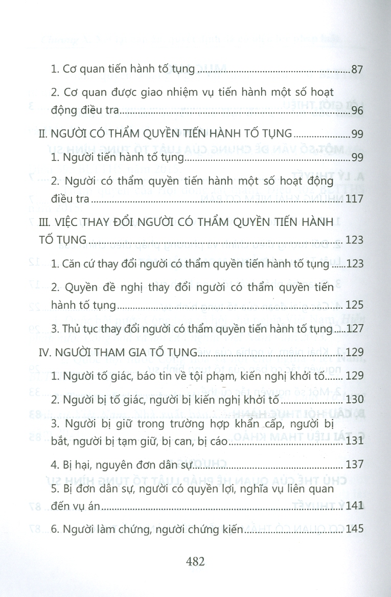 Cuốn sách gồm 9 phần, 510 điều, quy định trình tự, thủ tục tiếp nhận, giải quyết nguồn tin về tội phạm, khởi tố, điều tra, truy tố, xét xử và một số thủ tục