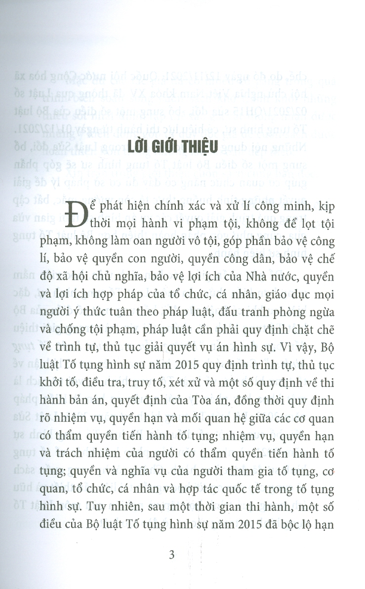 Phiên bản Bộ luật tố tụng hình sự năm 2015 (đính kèm 4 trang nội dung chỉnh sửa năm 2021), nên bạn đọc cân nhắc khi mua tham khảo Bộ luật tố tụng