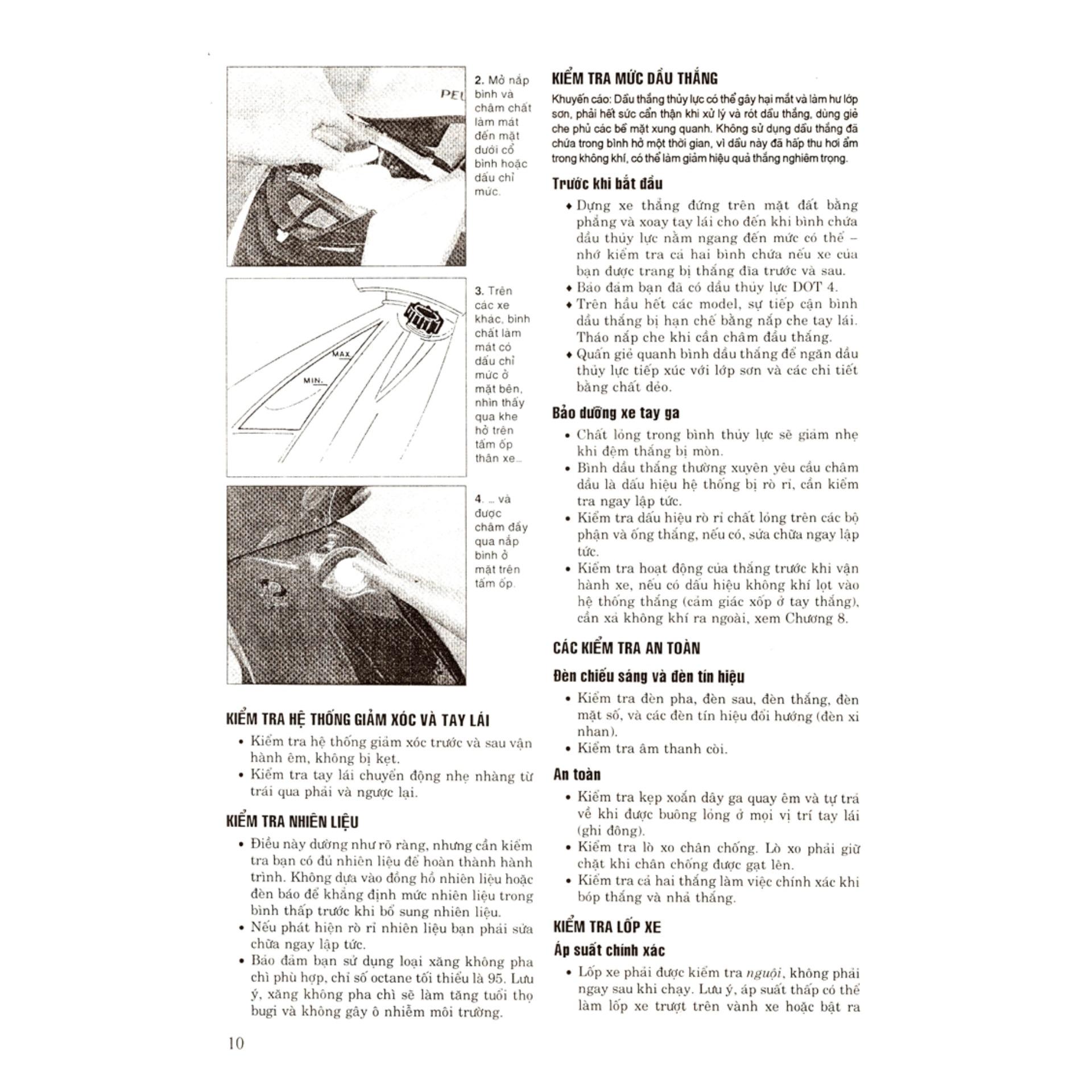 Cuốn sách này trình bày các hệ thống trên xe tay ga theo từng chương riêng biệt, với đầy đủ quy trình tháo lắp, kiểm tra, và thay các bộ phận của hệ thống. Mỗi quy trình được viết theo cách hướng dẫn từng bước để bạn có thể tự thực hiện và tận hưởng cảm giác thỏa mãn sau khi hoàn thành công việc. Ngoài ra, với những công việc đơn giản, tự thực hiện còn giúp bạn tiết kiệm thời gian.