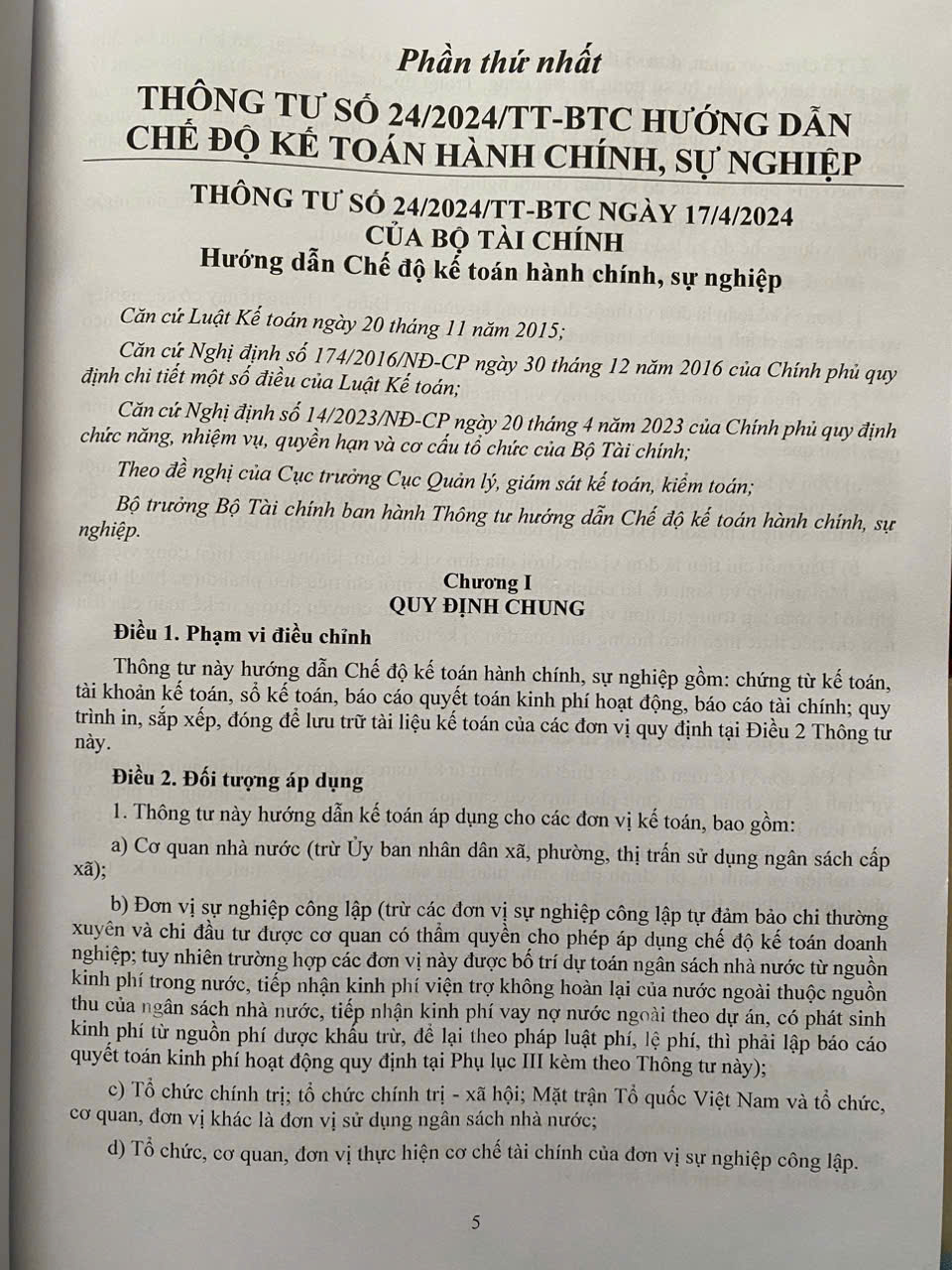 Phần I: Thông tư số 24/2024/TT-BTC Hướng dẫn Chế độ kế toán hành chính, sự nghiệp