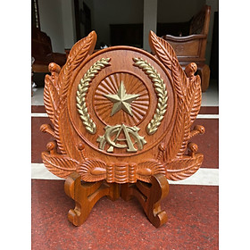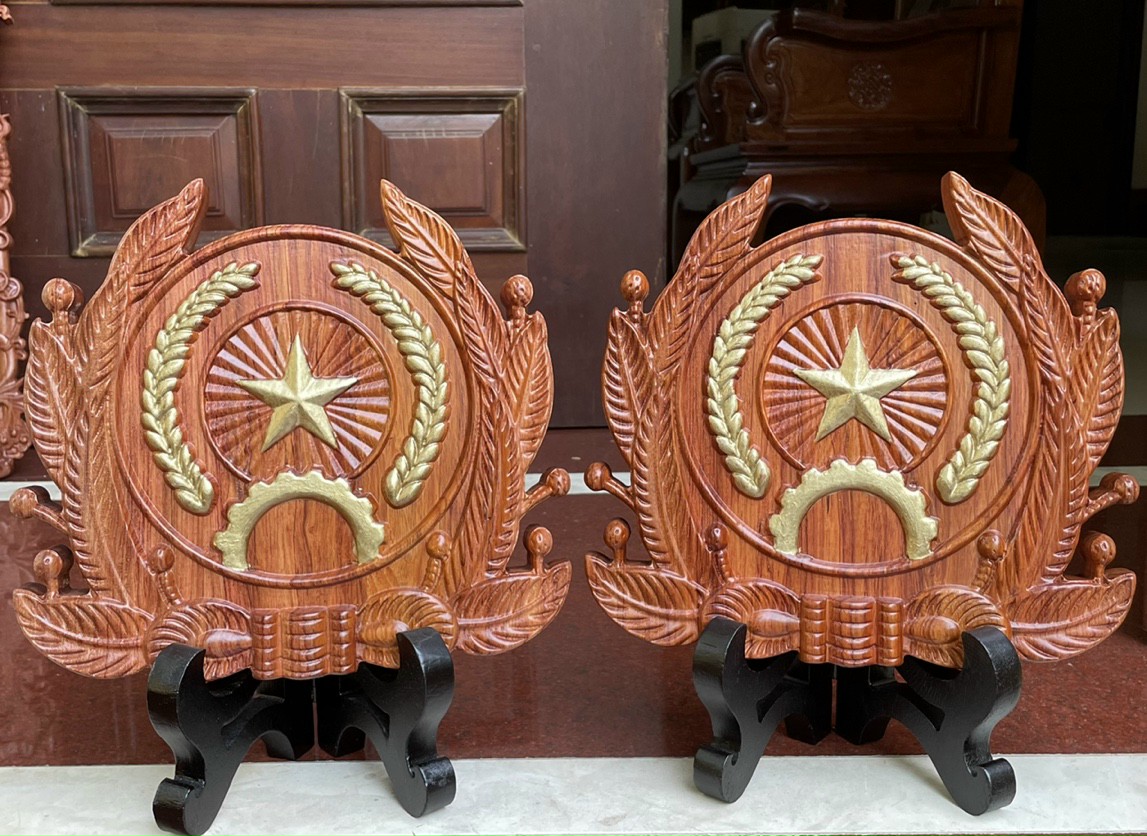 ✨Huy hiệu công an nhân dân trạm khắc bằng gỗ hương đá