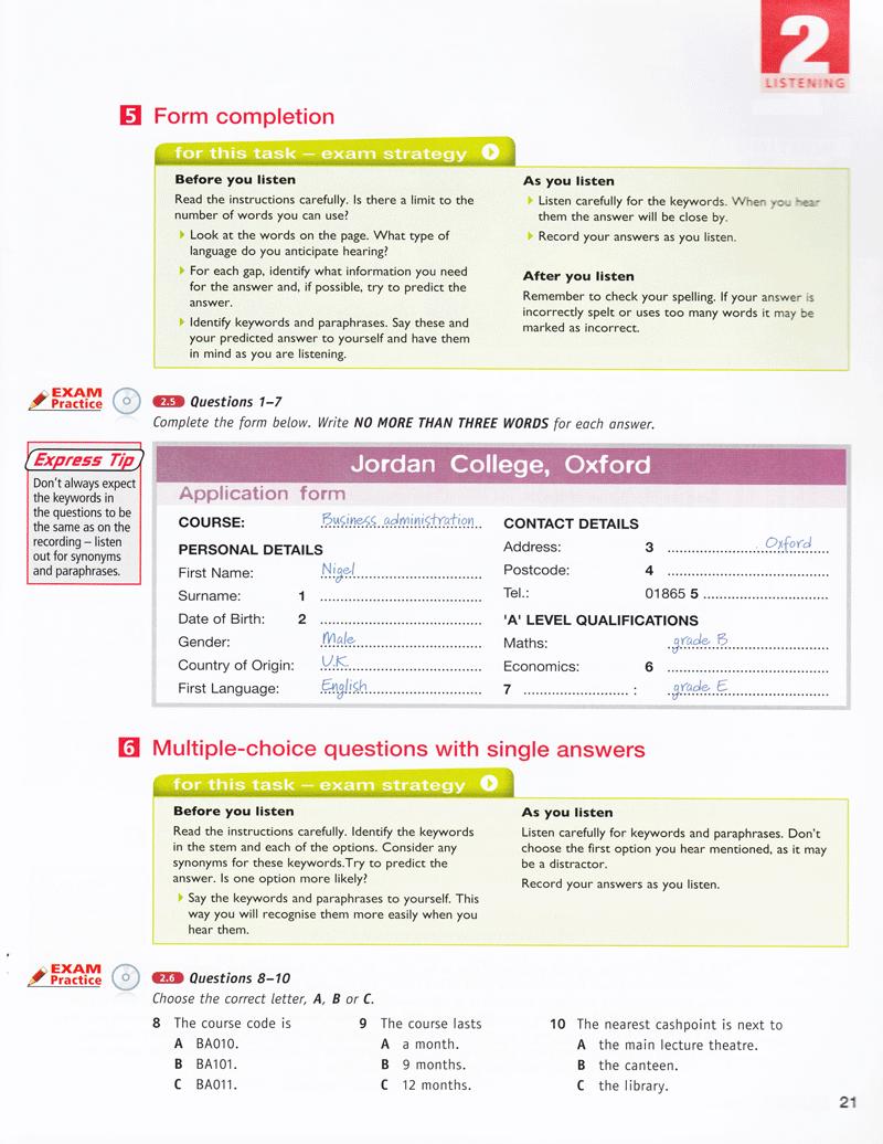 IELTS Express is a two-level preparation course for students at intermediate (4 - 5.5) and Upper Intermediate (5.5 - 7) levels. This popular IELTS preparation course has been completely revised. The Student's Book has been redesigned and almost all of the photographs, graphs and charts have been replaced. All of the reading and listening texts have been updated or are new.