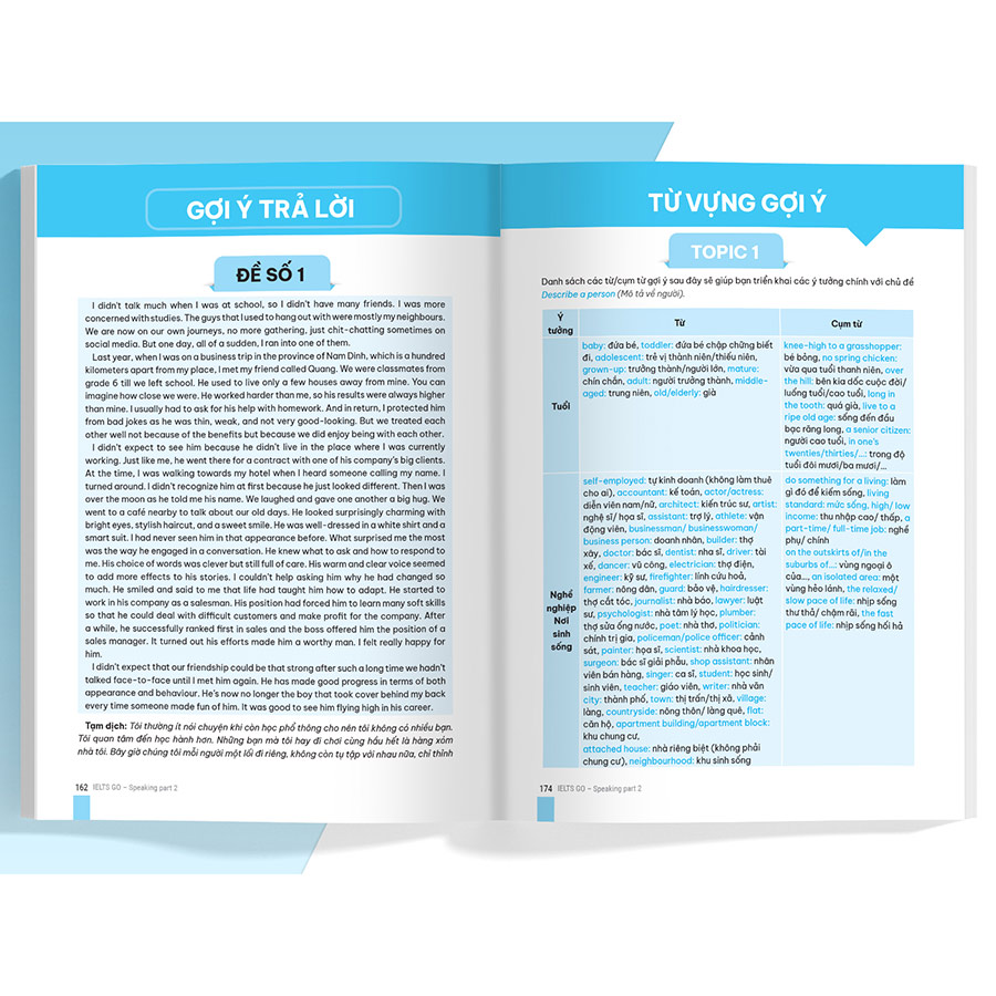 Phần này sẽ phân tích bài nói mẫu của 8 chủ đề phổ biến trong bài thi IELTS Speaking part 2. Ngoài ra cuốn sách còn cung cấp các cấu trúc gợi ý, các từ vựng “đắt” cùng bài tập tự luyện giúp bạn dễ dàng chinh phục Band 7+