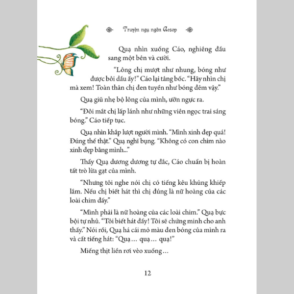 Illustrated Classics - Truyện ngụ ngôn Aesop là tuyển tập những câu chuyện nhẹ nhàng, hóm hỉnh nhưng ẩn chứa biết bao thông điệp vô cùng sâu sắc và đầy ý nghĩa. Các nhân vật trong truyện chủ yếu là những con vật được nhân cách hóa, có tính cách riêng và biết nói năng, suy nghĩ như con người. Qua các trang sách, chúng ta sẽ được gặp một cô chuột tốt bụng cứu nguy cho một chú sư tử hống hách, một chú thỏ kiêu ngạo chạy thi với một chú rùa chậm chạp, một con sói tinh quái giả dạng làm một chú cừu hay một bầy chuột nhút nhát bàn cách đeo chuông cho một con mèo...