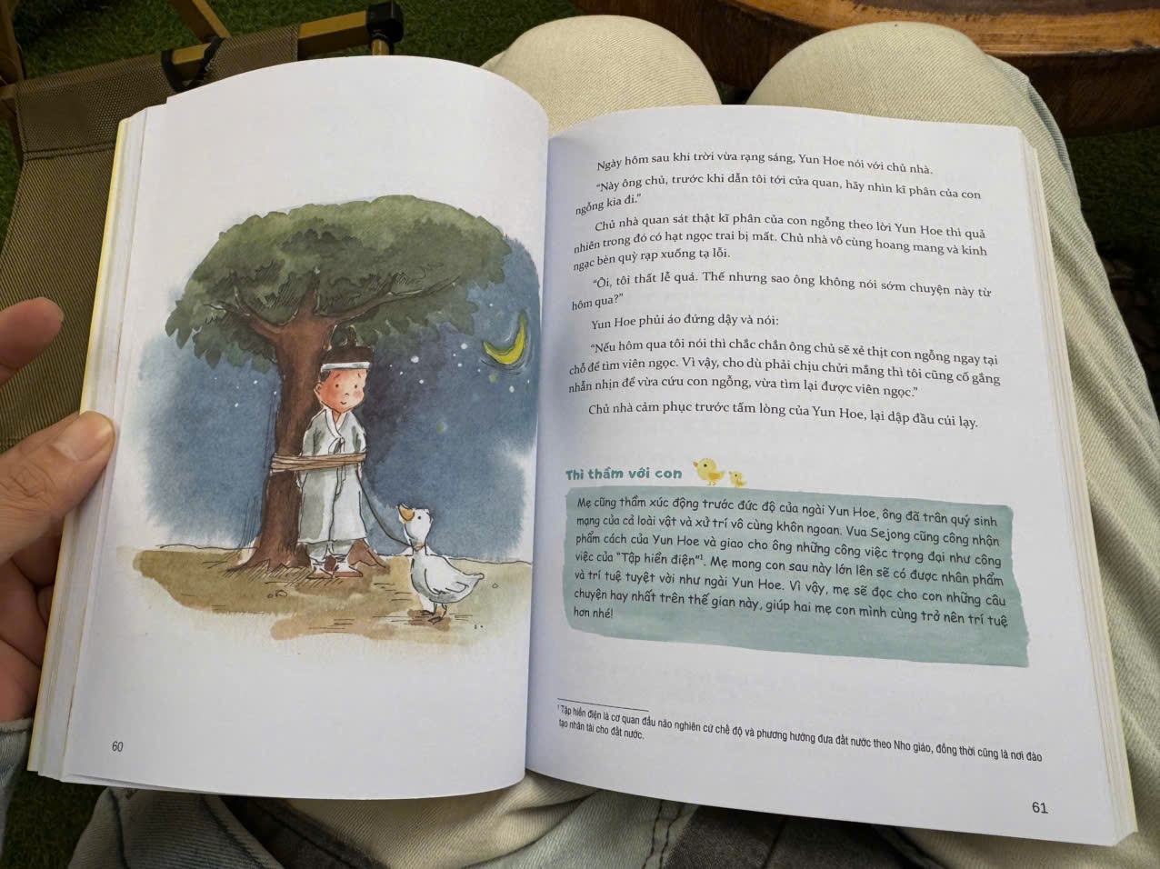 Điều đặc biệt trong cuốn sách này là ở cuối mỗi chương tác giả sẽ tổng kết và đưa ra những phát hiện của mình liên quan trực tiếp đến phương pháp thai giáo đọc sách. Trong đó, độc giả sẽ được giới thiệu các phương pháp thai giáo của những gia đình người nổi tiếng như Marie Curie, Saimdang hay Susedic, phương pháp giáo dục tiền sản bằng heo đất “Tzedakah”, những cách giúp người cha trò chuyện với thai nhi hay phương pháp hát ru truyền thống…