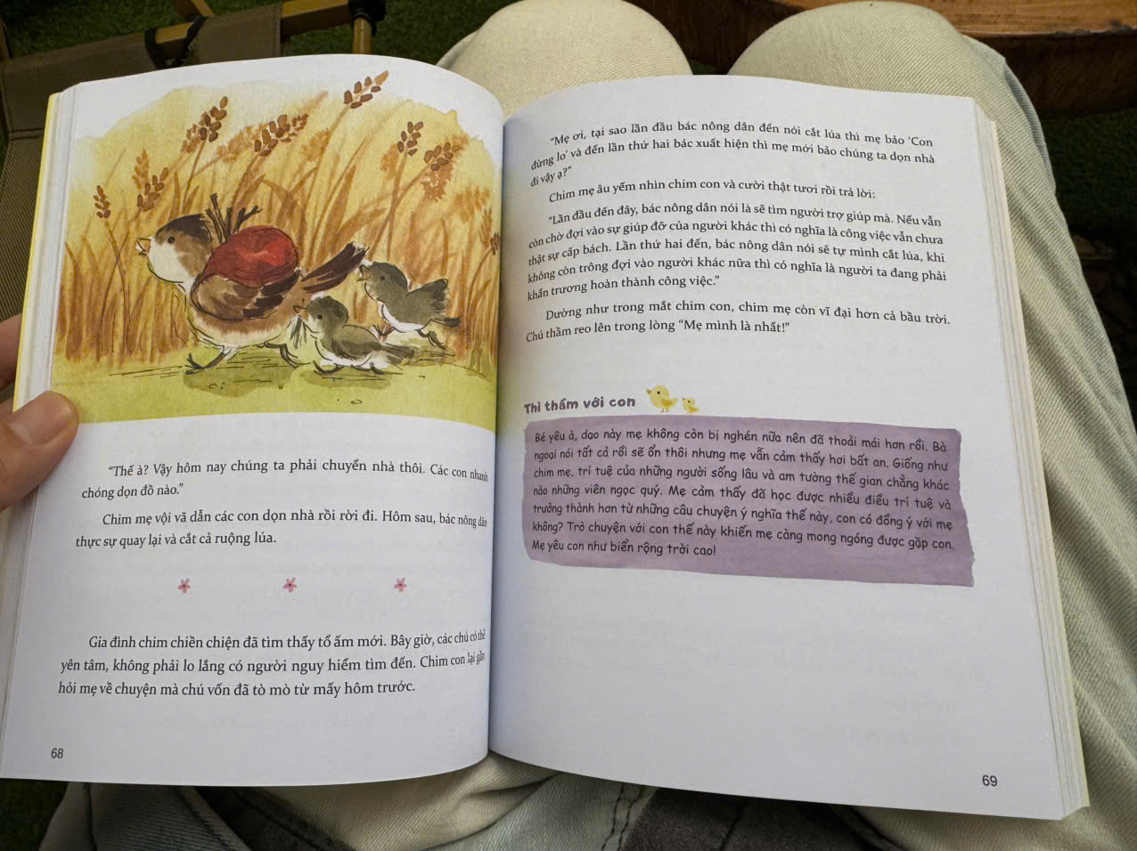 Các bà mẹ có thể đọc cuốn sách này một mình, đọc cùng chồng hoặc đọc với bố mẹ, dù thế nào thì hãy đọc to thành tiếng để gửi tới bé yêu những nội dung ý nghĩa. Bởi đó không chỉ là khoảng thời gian giao tiếp với con mà còn mang lại cảm giác mãn nguyện đến chính họ cũng phải ngạc nhiên vì được tiếp cận với những trí tuệ của cuộc đời.”