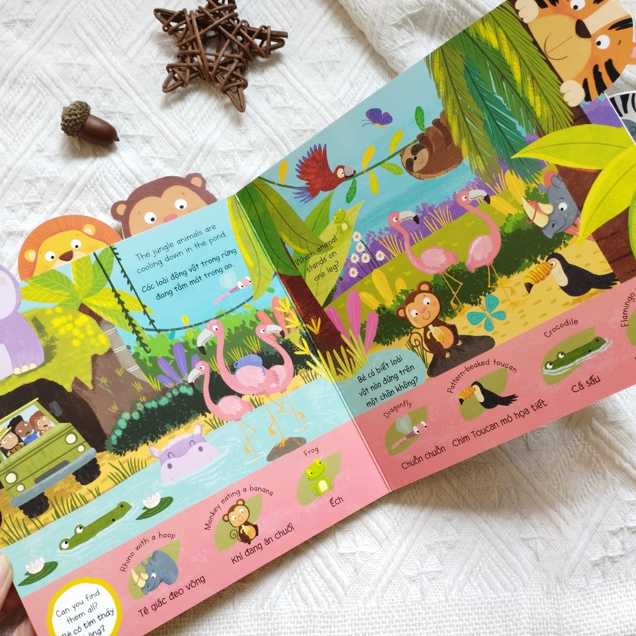 Bé hãy cùng các bạn nhỏ phiêu lưu một chuyến bằng xe cắm trại để khám phá khu rừng nhé! Mỗi trang sách ẩn chưa rất nhiều điều thú vị cho các bé khám phá đấy.