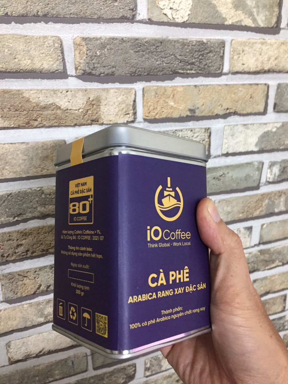 IO coffee khởi nghiệp Sản phẩm gồm: - 1 hộp coffee 200g Arabica Cầu Đất cao cấp dùng pha phin - Coffee tự nhiên, chọn lọc, rang mộc, theo tiêu chuẩn quốc tế. - 1