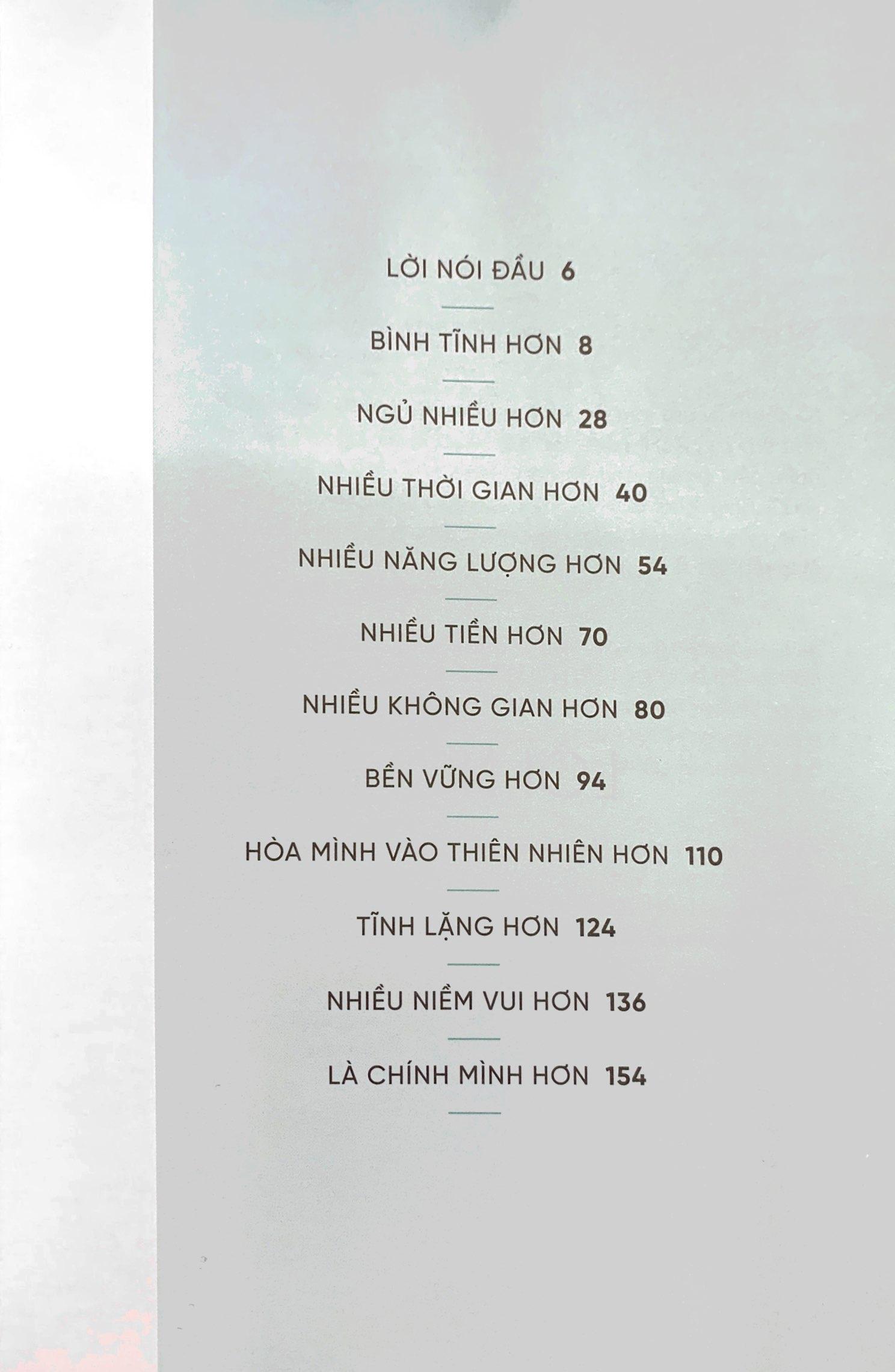 - Oscar Wilde Tất cả chúng ta đều có lúc lạc lối giữa cuộc sống bận rộn và hối hả, nhưng bạn luôn có thể khám phá ra con đường trở về với bản thân tốt đẹp và hạnh phúc nhất. Tất cả những gì bạn cần là sống chậm hơn, có chủ đích hơn và đón nhận triết lý “ít đi để được nhiều hơn”. Với nhiều lời khuyên thiết thực cùng những hình ảnh minh họa sinh động, Ít Đi Để Được Nhiều Hơn sẽ giới thiệu đến bạn những phương pháp sống tối giản để giảm bớt sự lộn xộn trong cuộc sống, sắp xếp lịch trình hiệu quả và dành thời gian cho những điều thực sự quan trọng, cũng như làm cho cuộc sống hàng ngày của bạn trở nên phong phú hơn bằng cách xem trọng chất lượng hơn số lượng.
