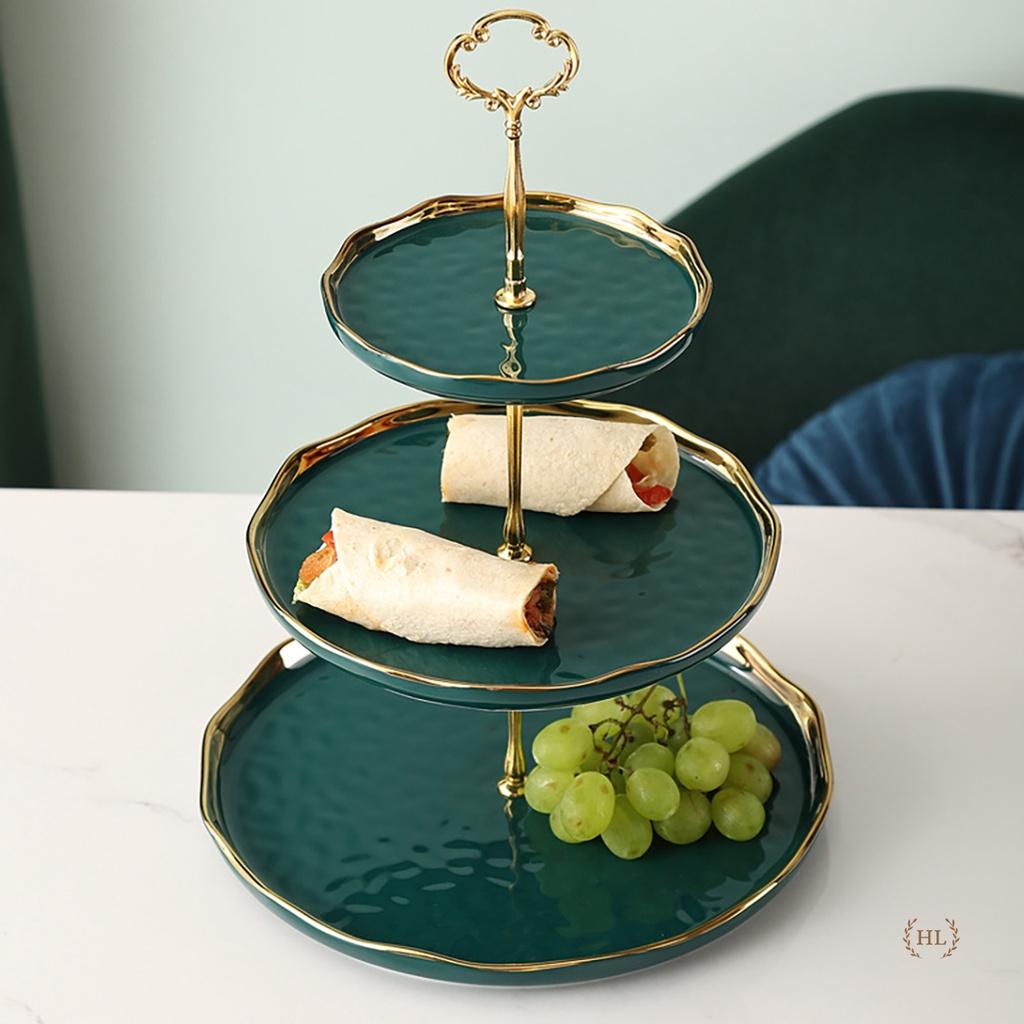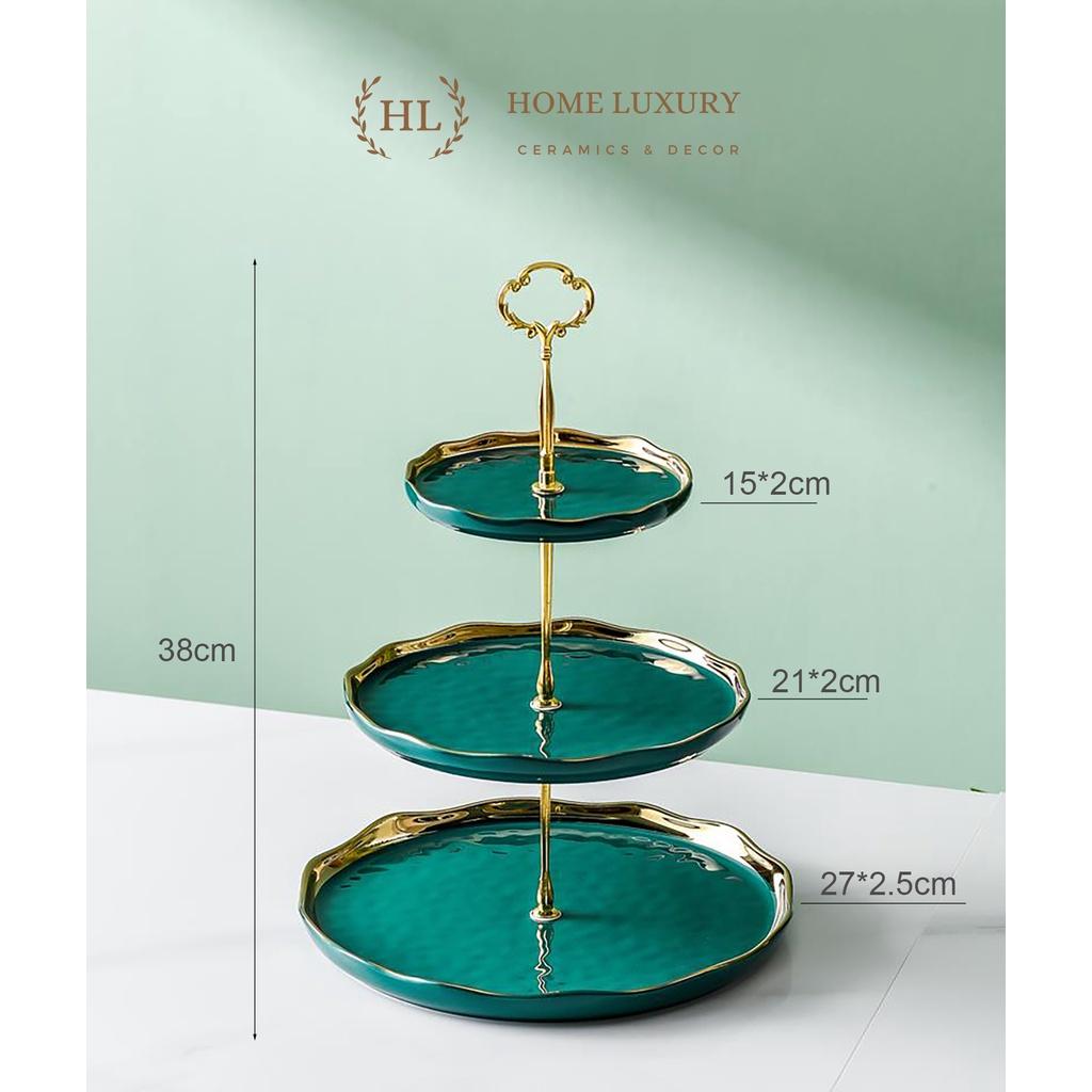 ✨Kệ 2 - 3 tầng để bánh kẹo, hoa quả xanh ngọc bích | Khay tầng sứ viền vàng cao cấp | KHAY TẦNG SỨ TRỤC MẠ VÀNG