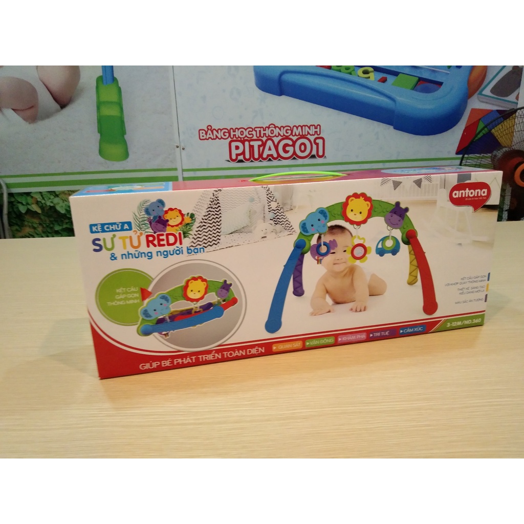 Mua tại TiktokHãng sản xuất: Antona Chất liệu và các tác dụng chính: Nhựa nguyên sinh Loại Đồ chơi: sơ sinh Xuất xứ: Việt Nam Màu sắc: Đa dạng Độ tuổi: Từ 3 tháng tuổi Kích thước drc: 763646cm Kệ chữ A “Sư Tử REDI và những người bạn” là công cụ hữu ích hỗ trợ phụ huynh trong quá trình chăm sóc em bé. Bộ kệ có màu sắc tươi tắn, thu hút bé, khiến bé có thể dành nhiều thời gian chơi cùng các vật treo trên kệ. Nhờ vậy, thời gian chơi cùng con sẽ trở nên vui vẻ và thú vị hơn. Dành thời gian tìm hiểu và nghiên cứu, Antona nhận thấy phụ huynh rất yêu thích những bộ kệ chữ A cho bé nhưng vì không gian phòng chật hẹp nên khá băn khoăn. Thấu hiểu được vấn đề này, đội ngũ thiết kế của chúng tôi đã có những sáng tạo độc đáo ở bộ kệ Sư Tử REDI này. Sản phẩm được thiết kế với các khớp quay linh hoạt, nên bố mẹ có thể gấp gọn đơn giản sau khi sử dụng. Sản phẩm rất tiện dụng lại mang đến nhiều lợi ích trong quá trình chơi của bé. Đặc biệt, chỉ với chi phí khoảng hơn một trăm nghìn đồng, bố mẹ đã có thể chọn mua được một bộ kệ Sư Tử REDI ấn tượng với nhiều tính năng nổi bật dành cho bé. Với quan điểm thiết kế lấy em bé làm trung tâm, “Sư Tử REDI và những người bạn" được thiết kế và chế tạo giúp hỗ trợ bé phát triển toàn diện ngay từ những năm tháng đầu đời. Bộ kệ tạo điều kiện cho bé phát triển cả về vận động, kĩ năng, cảm xúc và trí tuệ. Kệ có màu sắc tươi tắn, nổi bật, các gam màu được phối hợp hài hòa không chỉ kích thích thị giác mà còn hỗ trợ khả năng nhận thức màu sắc của bé. Kệ Sư tử REDI giúp tăng khả năng phối hợp tay mắt, rèn luyện hoạt động vận động tinh cho bé như: hướng mắt nhìn và kéo các vật treo, hướng mắt và đưa tay với lên các con vật ngộ nghĩnh khi chơi cùng bố mẹ, Những vật treo này có thể tháo rời làm đồ chơi ngậm nướu giúp giảm đau nhức, ngứa lợi ở giai đoạn chuẩn bị mọc răng. Sản phẩm an toàn Sản phẩm được sản xuất từ những nguyên liệu an toàn (nhựa nguyên sinh 100%, chất liệu bột màu, sơn phủ,) được kiểm định dựa trên cơ sở các tiêu chuẩn trong nước QCVN 03/2009 và tiêu chuẩn quốc tế EN71. Bộ kệ có kết cấu bền chắc, thân thiện với môi trường. Các chi tiết có kích thước phù hợp đảm bảo an toàn cho bé trong quá trình sử dụng. Đặc biệt, các vật treo được làm bằng nhựa dẻo từ chất liệu an toàn nên bạn hoàn toàn yên tâm khi cho bé sử dụng là đồ chơi ngậm nướu. Vật treo là những đồ vật quen thuộc trong cuộc sống làm bằng nhựa dẻo như: chiếc ô tô, bông hoa và cây đàn có kết hợp cả những hạt nhựa phát ra tiếng kêu khi bé cầm nắm. Các vật treo ngộ nghĩnh, hình dáng đa dạng giúp bé cải thiện kỹ năng cầm nắm. Ba vật treo có màu sắc tươi tắn, nổi bật, kết hợp hài hòa thu hút. Được làm bằng chất liệu an toàn, khả năng tháo lắp đơn giản, vật treo có thể được sử dụng là đồ chơi ngậm nướu cầm tay cho bé. Bạn không cần lo lắng vấn đề vệ sinh đồ chơi ngậm nướu khi bé chơi nhiều ngày vì các vật treo của bộ kệ REDI đều có thể khử bằng phương pháp nhiệt hoặc sử dụng máy tiệt trùng trước khi cho bé chơi. Tạo hình ấn tượng Là sản phẩm được nghiên cứu và sản xuất tại Việt Nam, bộ kệ REDI có tạo hình gần gũi với bé. Trên thanh ngang là những con vật quen thuộc như chú Sư Tử REDI, chú voi xanh, Hà Mã tím. Mỗi con vật có một màu sắc riêng, nổi bật và ấn tượng. Đặc biệt, vì là sản phẩm dành cho bé sơ sinh (Dưới 1 tuổi) nên các con vật này có tạo hình rất ngộ nghĩnh, đáng yêu. Với tạo hình mái vòm cũng những con vật đặc trưng, bộ kệ REDI giống như một sở thú thu nhỏ cho giúp bé làm quen và vui chơi cùng những người bạn mới. Nhạc Mozart kích thích trí não phát triển Đặc biệt, với phiên bản âm thanh, đội ngũ thiết kế của ANTONA đã nghiên cứu và lựa chọn những bản nhạc Mozart hay nhất cho sản phẩm. Những bản nhạc này góp phần kích thích trí não phát triển giúp bé thông minh hơn. Đồng thời, sử dụng kệ Sư Tử nhí có âm thanh giúp rèn luyện cho bé thói quen nghe nhạc từ những năm tháng đầu đời. Bên cạnh đó, ba bản nhạc với tiết tấu đa dạng từ vui nhộn, sôi động đến nhẹ nhàng du dương phù hợp cho bé nghe khi vui chơi đồng thời kết hợp làm nhạc ru. Tính năng chơi của sản phẩm Những ngày đầu, em bé của bạn có thể dành hàng giờ đồng hồ chăm chú nhìn ngắm các con vật ngộ nghĩnh trên thanh ngang và các vật treo đầy màu sắc. Bộ kệ giúp tăng khả năng tập trung của bé, thu hút bé bởi màu sắc ấn tượng. Dần dần, bé sẽ không chịu nằm yên ngắm nhìn nữa mà bé có xu hướng muốn vươn tay với, kéo và cầm nắm các vật treo. Hành động này giúp bé phát triển kỹ năng vận động cầm nắm chắc chắn hơn đồng thời hỗ trợ khả năng phối hợp hoạt động của tay và mắt. Đặc biệt, trong