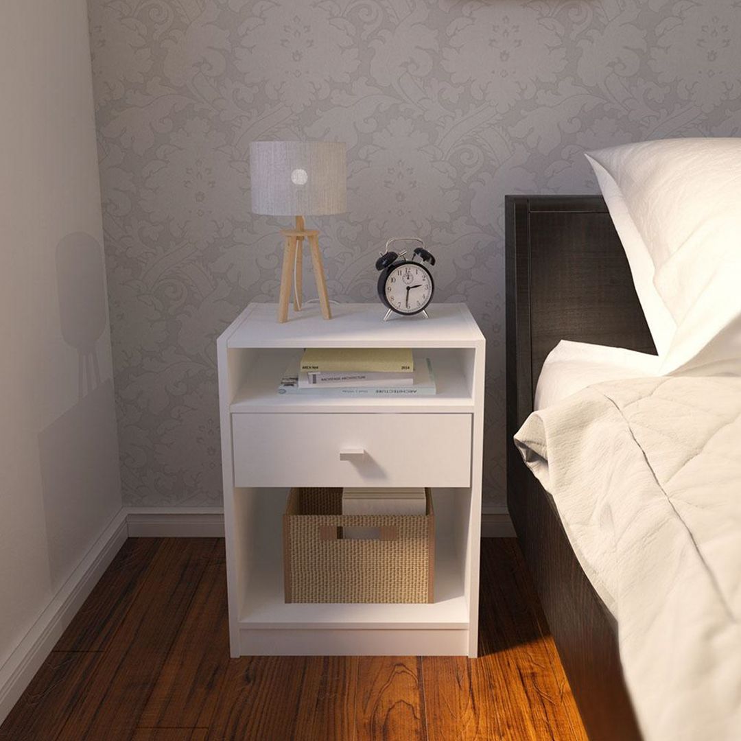 - Kệ tủ đầu giường hình vuông có hộc kéo - Chất liệu: ván gỗ HMR (viết tắt của High Moisture Resistence) lõi xanh chống ẩm, chống thấm nước phủ melamine, phun sơn trắng bóng