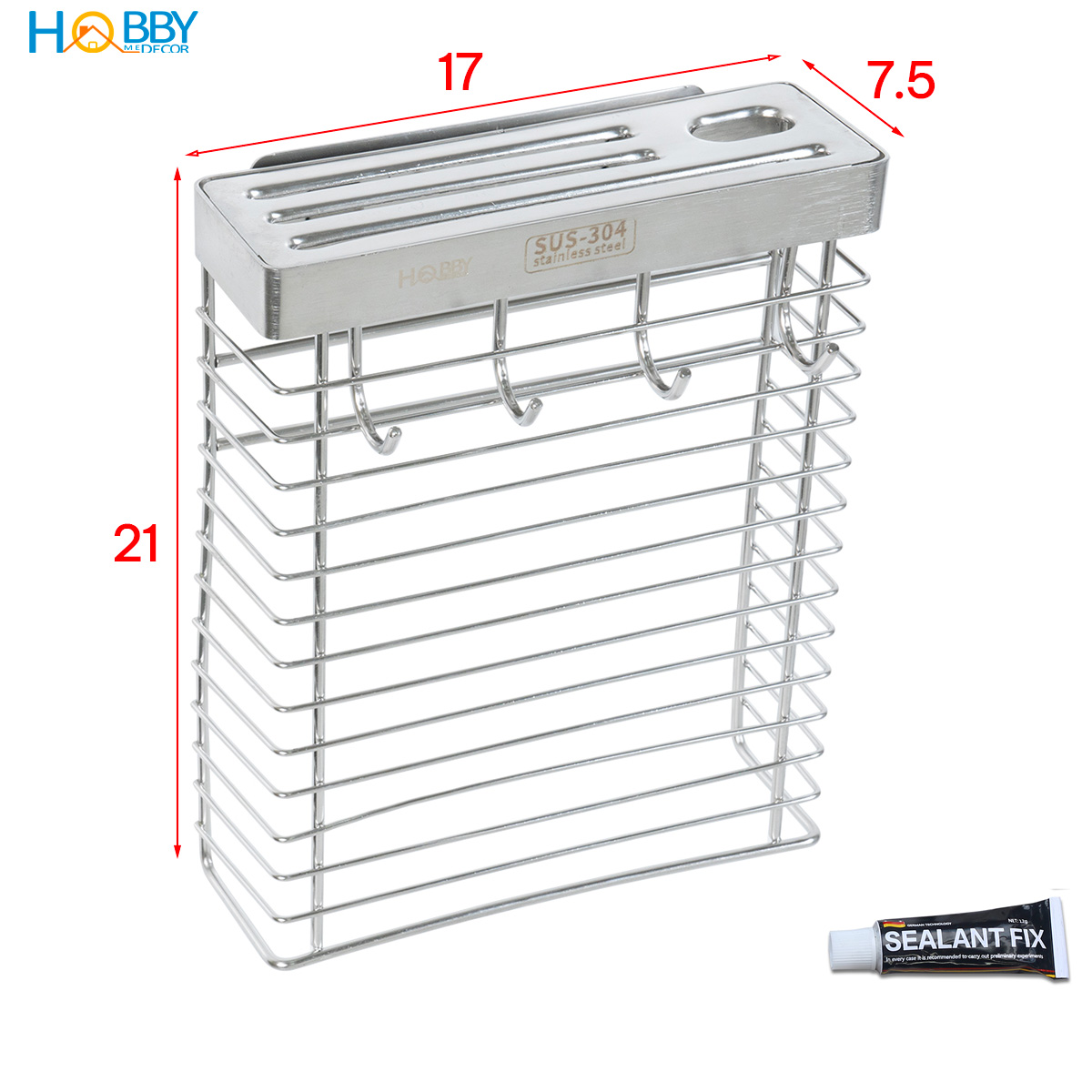 Kệ để dao kéo có móc treo khăn inox 304 dán tường Hobby home decor TD1