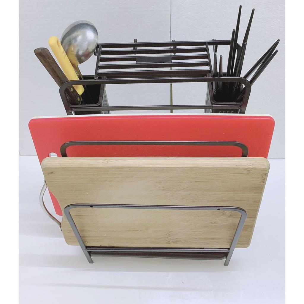 Kệ để dao thớt đũa muỗng nắp đa năng, chất liệu inox cao cấp chống gỉ sét, có khay đựng ráo nước