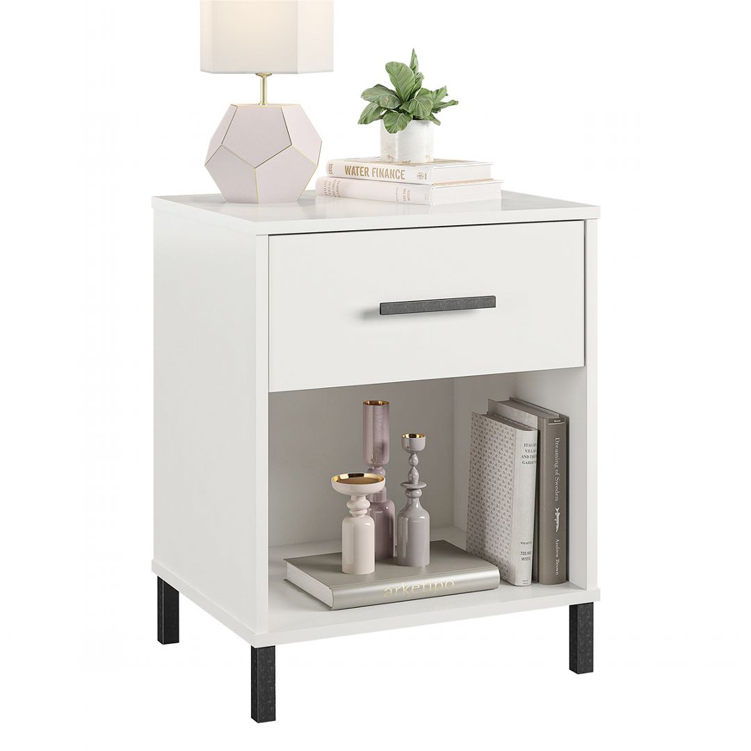 - Kệ tủ đầu giường hình vuông có hộc kéo - Chất liệu: ván gỗ HMR (viết tắt của High Moisture Resistence) lõi xanh chống ẩm, chống thấm nước phủ melamine, phun sơn trắng bóng