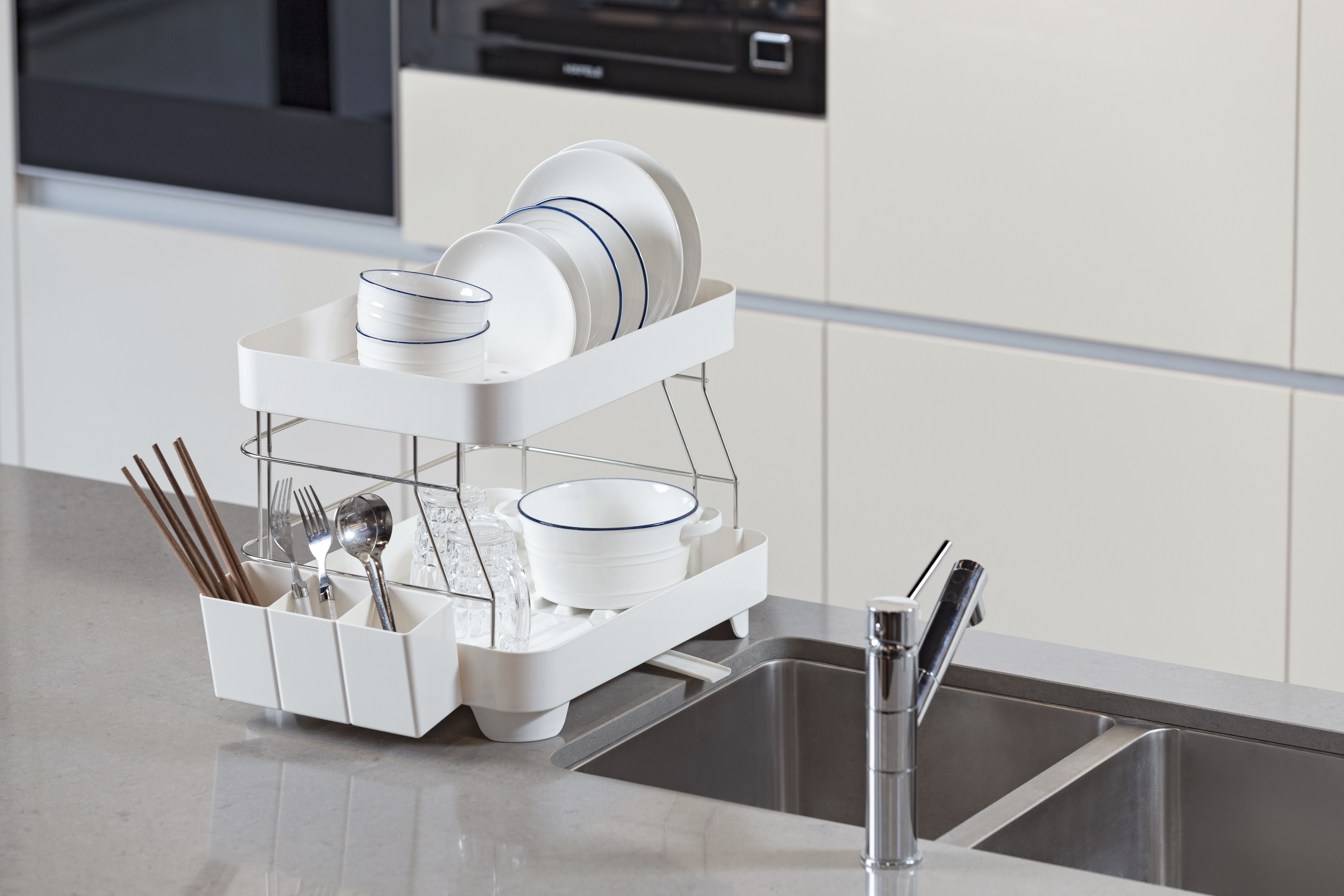 Kệ úp chén đĩa 2 tầng inox 304 Hobby home decor UCD có khay hứng nước Thông tin kỹ thuật - Chất liệu chính: Inox 304 xước không rỉ sét - Có 2 khay nhựa