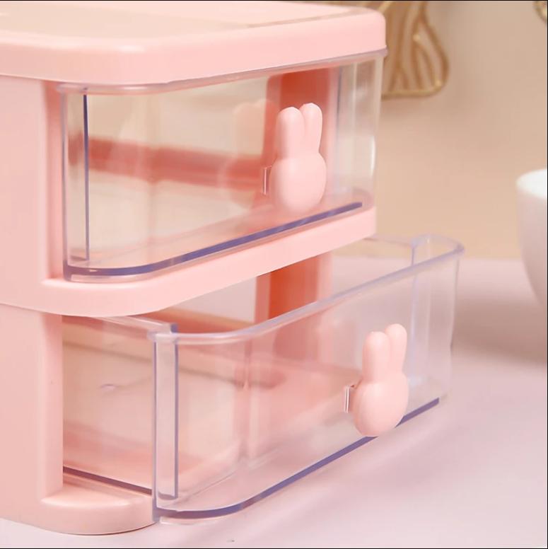 Kệ tủ đa năng để bàn có ngăn kéo trong suốt tay cầm thỏ Mimo