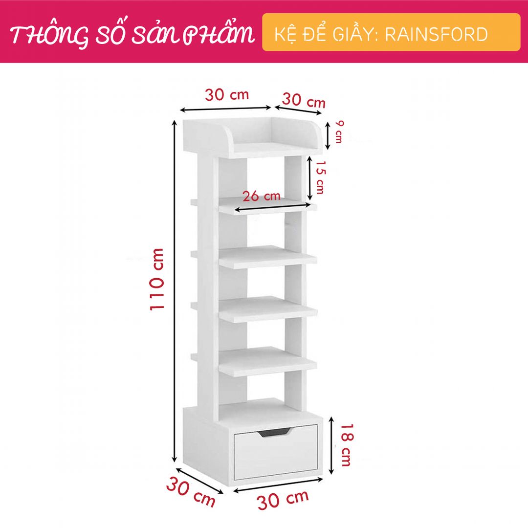 Kệ để giầy gỗ SMLIFE Rainsford với phong cách đơn giản sẽ là điểm nhấn nổi bật cho lối ra vào căn hộ của bạn. Sản phẩm phù hợp với nhiều phong cách nội thất từ hiện đại cho tới cổ điển, vintage. Kệ để giầy gỗ SMLIFE có nhiều kệ và hộc ngăn kéo giúp tổ chức gọn gàng giầy dép. Sử dụng vật liệu ván ép công nghiệp MDF chống ẩm phủ Melamine cao cấp giúp kệ giầy SMLIFE có độ bền cao, chống trầy và chống ẩm rất tốt. ĐẶC ĐIỂM SẢN PHẨM: